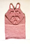 Aaku Halter Top is worked top down. The yolk is worked flat in garter and increases are made using decorative yo increases which also double up as button holes to fix the halter straps in place. Then stitches are cast on and joined to knit in the round, for the body section. This top is reversible and can be worn with reverse stockinette as the body section by turning the garment inside out. The pattern instructions are written and the leaf lace is both charted and written.
