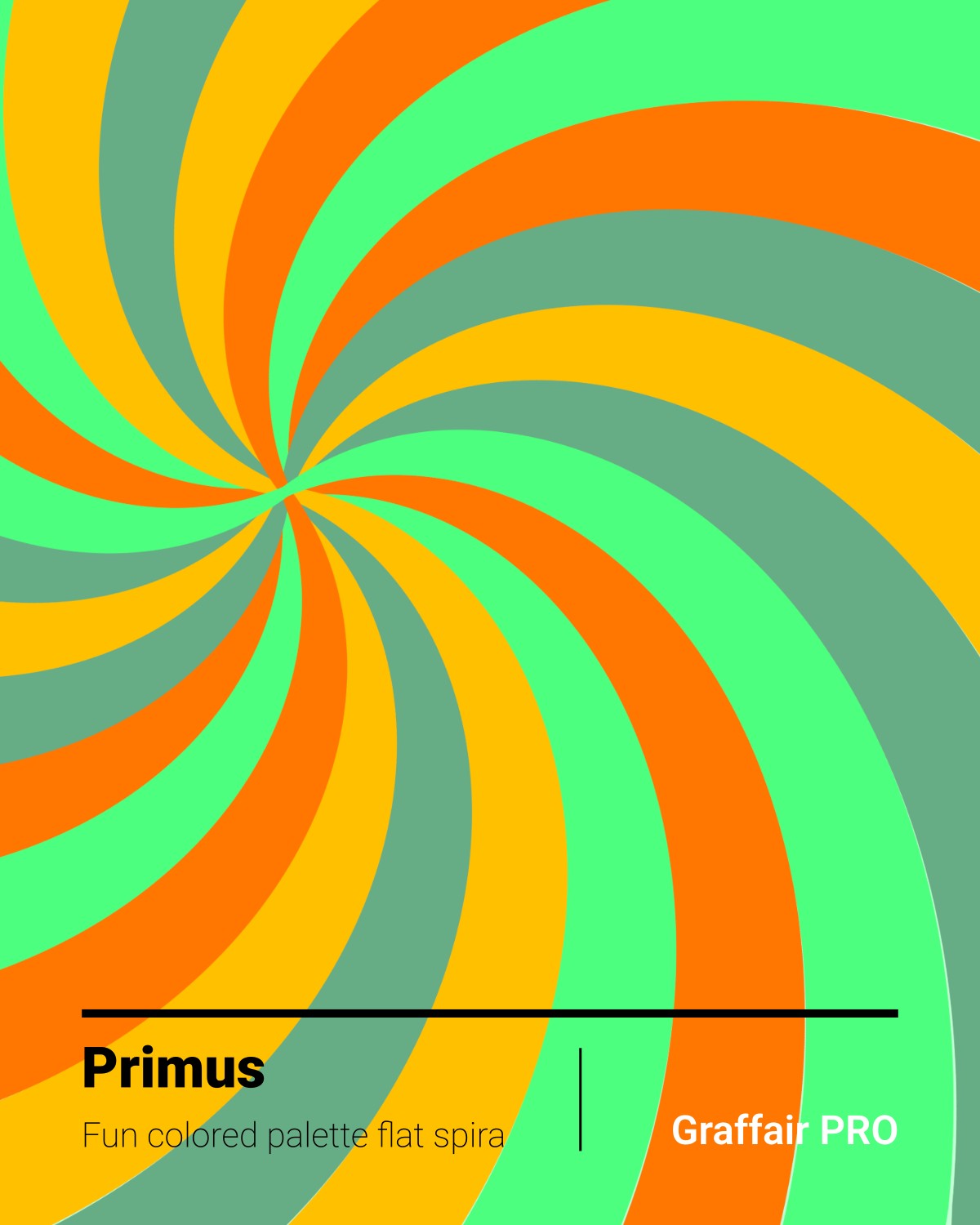 Primus: A vibrant color palette, flat spiral pattern illustration.