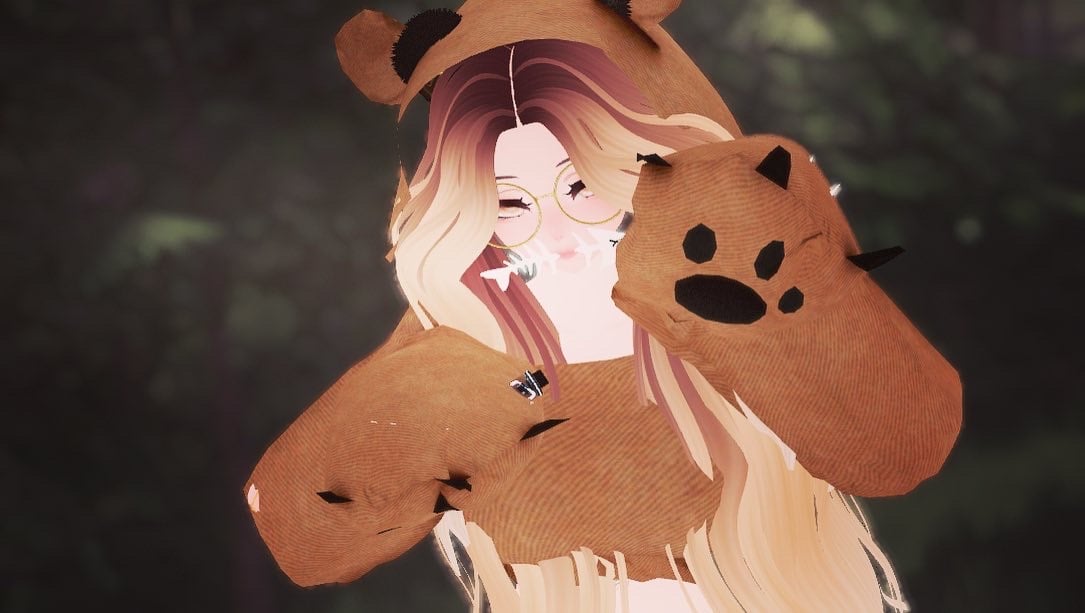 Clothing: Bear hoodie, "hug me" tanktop, onesie, bra, panties shorts, pants, slippers, vans