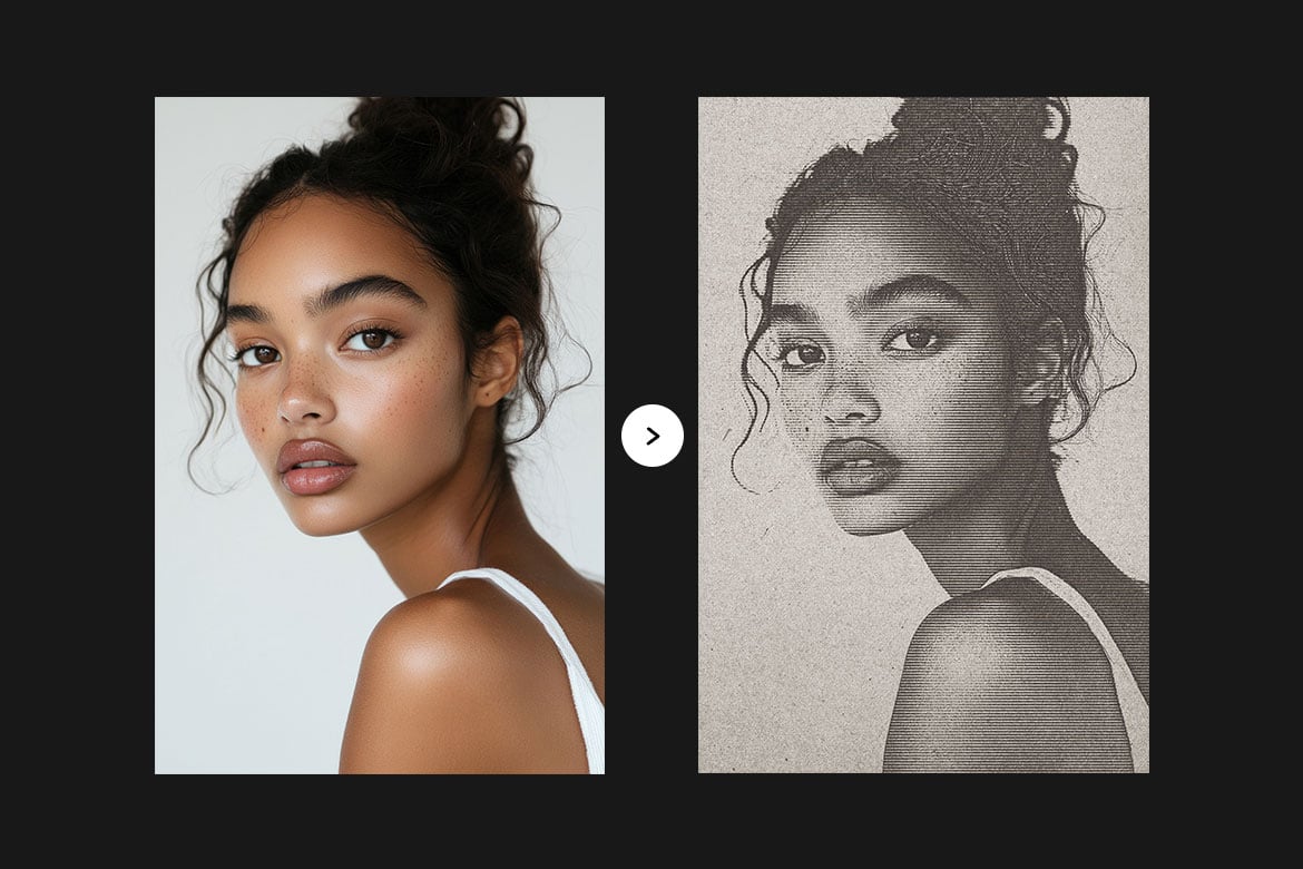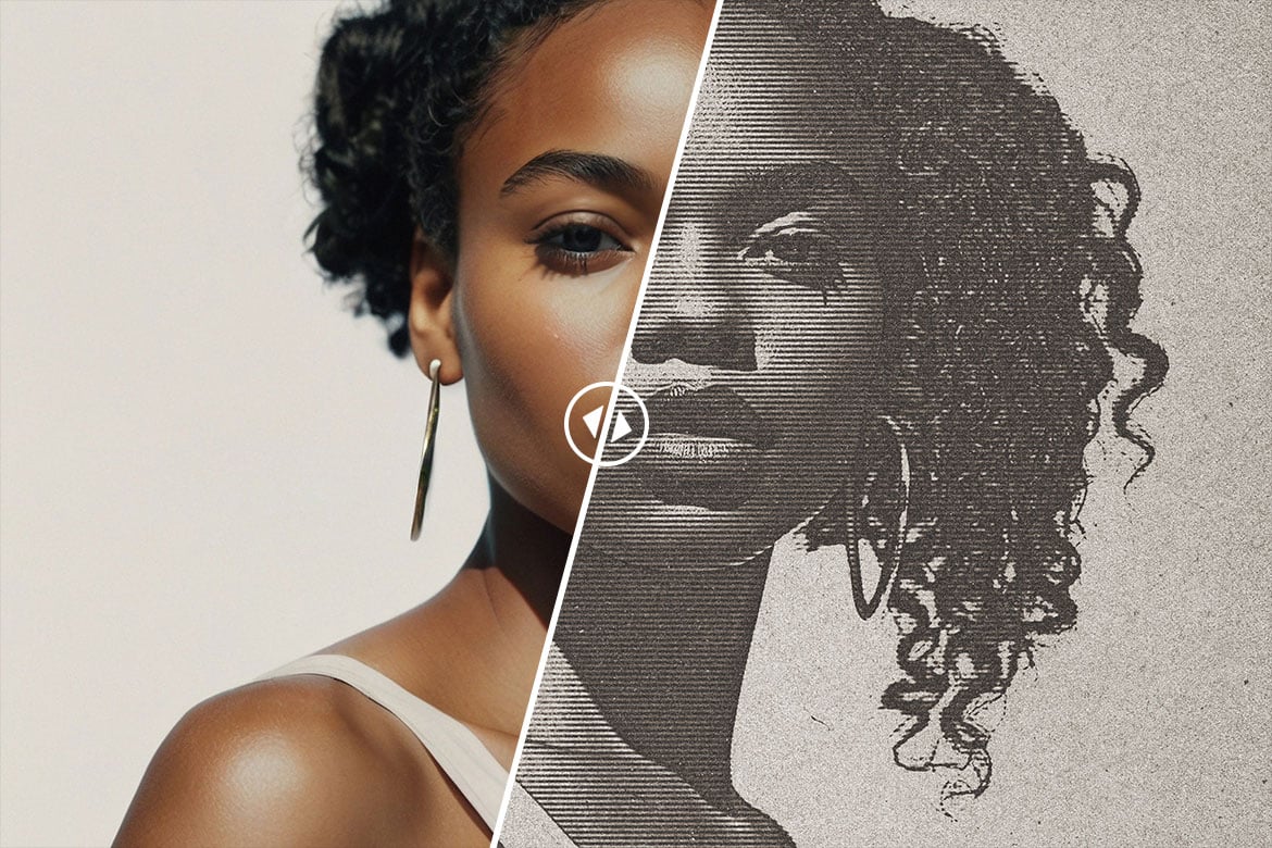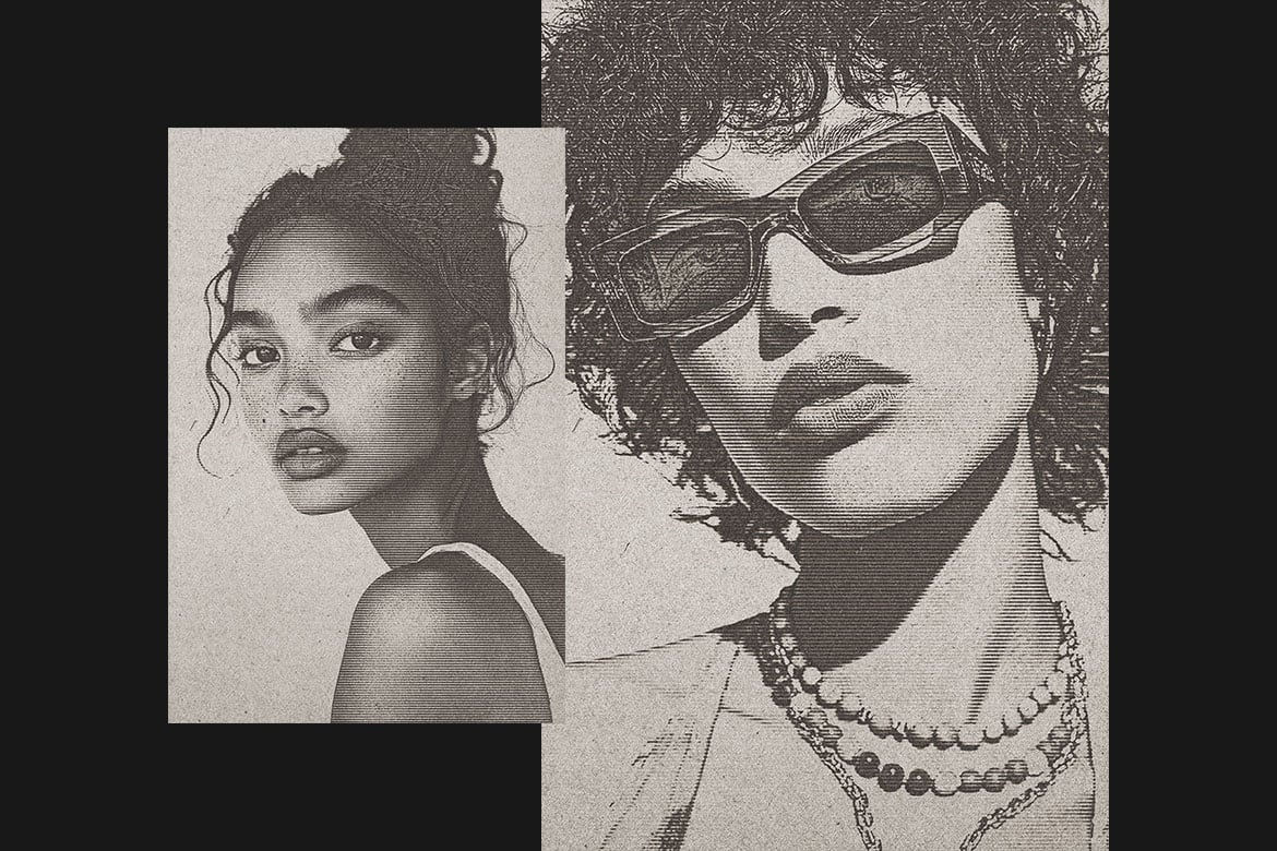 B&W Line Printing Photo Effect