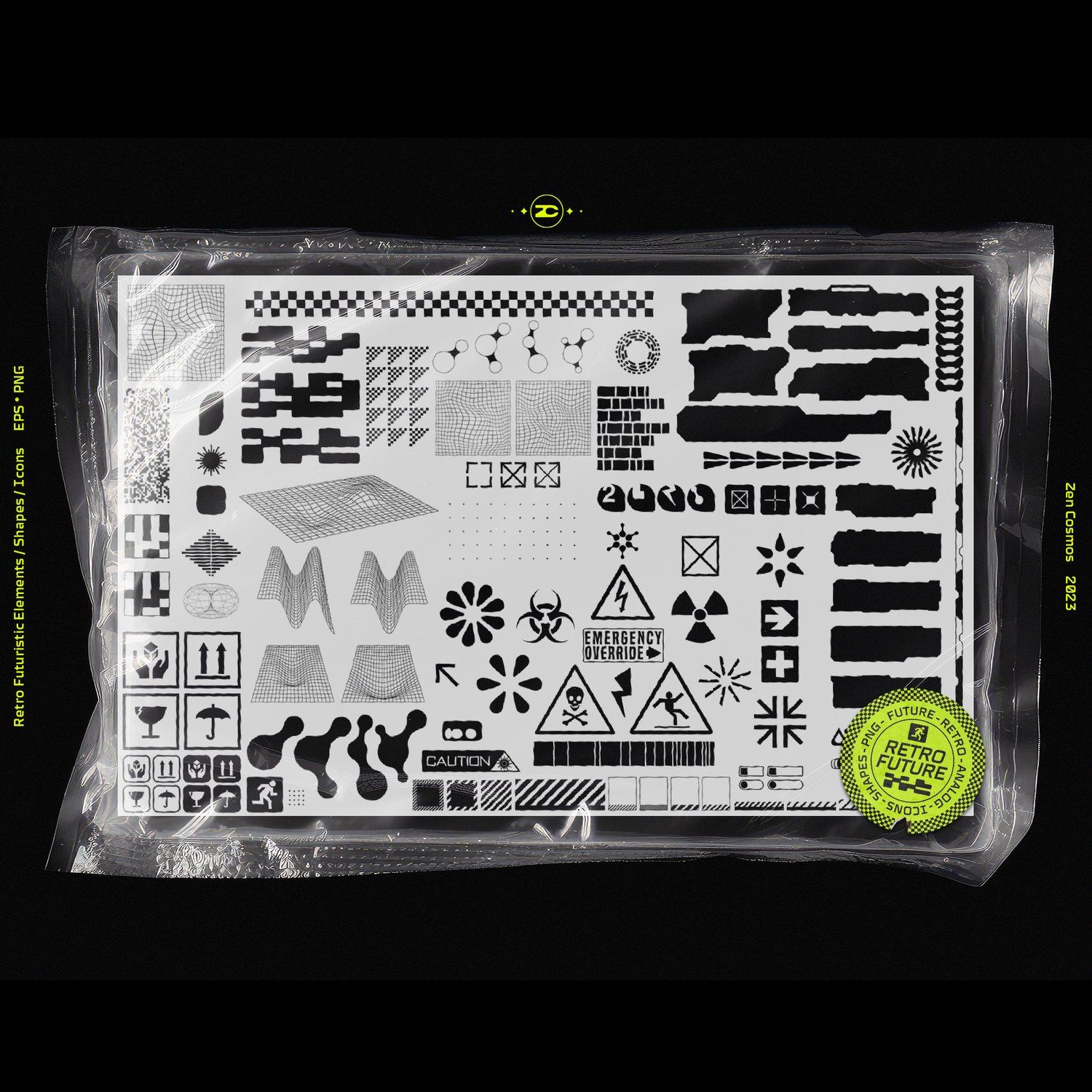 112 Retro Futuristic Y2K Elements For Logos, Album Covers, Posters
