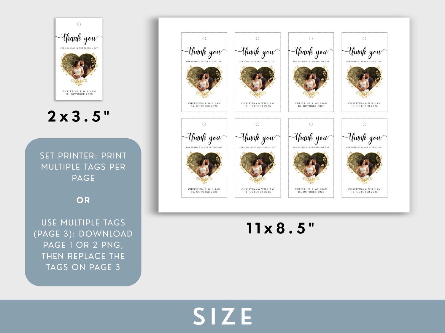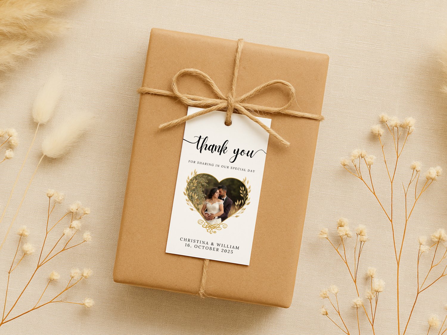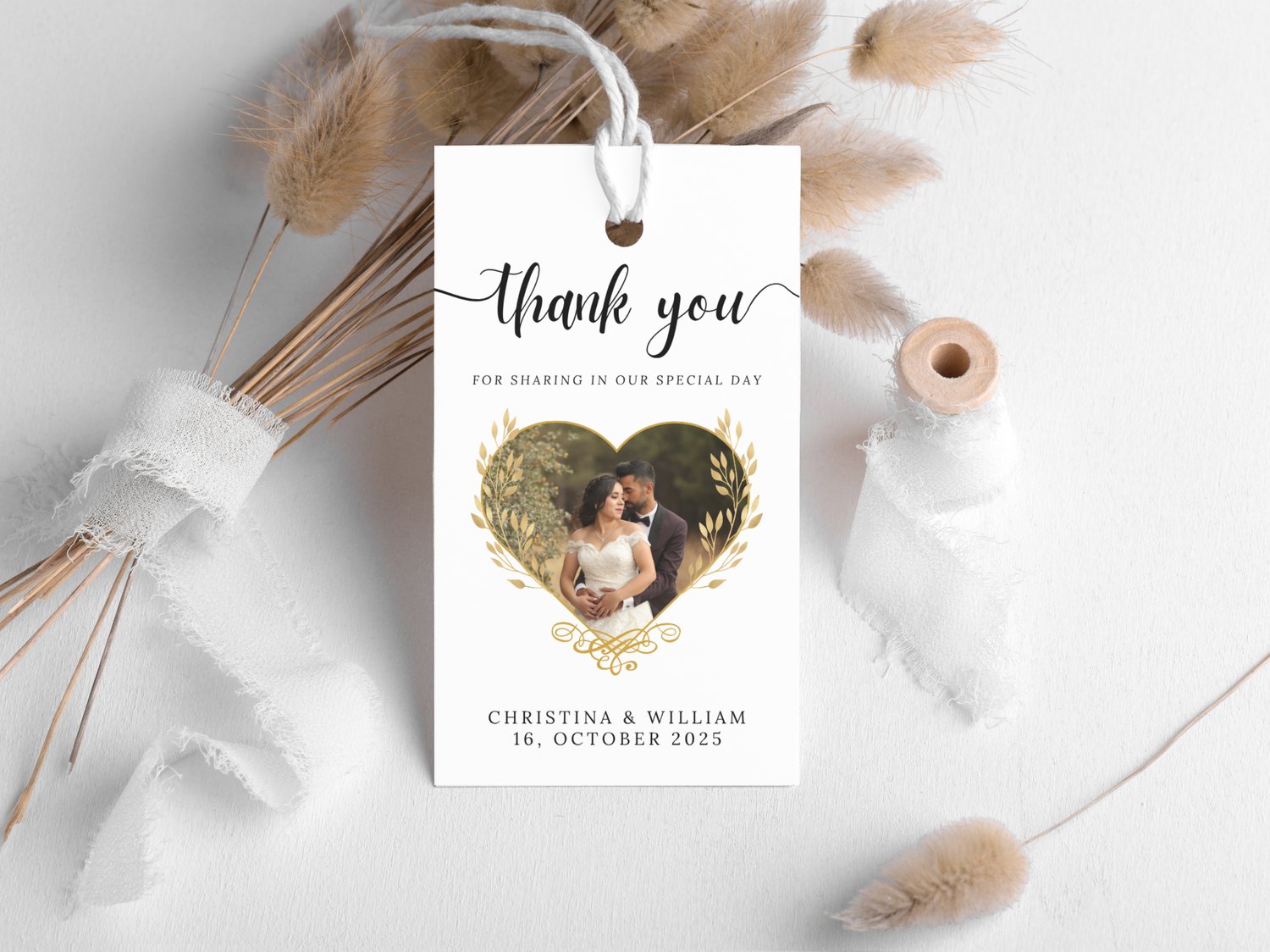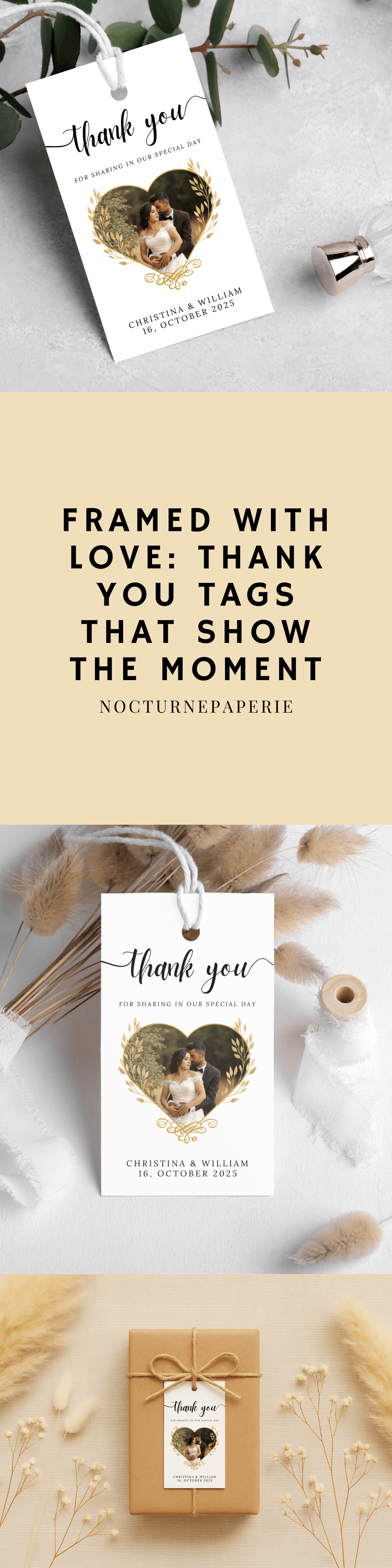 Framed Photo Thank You Tag Template For Wedding Favor Editable Canva Picture Tag Printable Thank You Card With Couple Photo Frame Layout 007