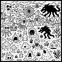 A high-quality PDF of a page from my coloring book; Doodle Worlds Book 1.