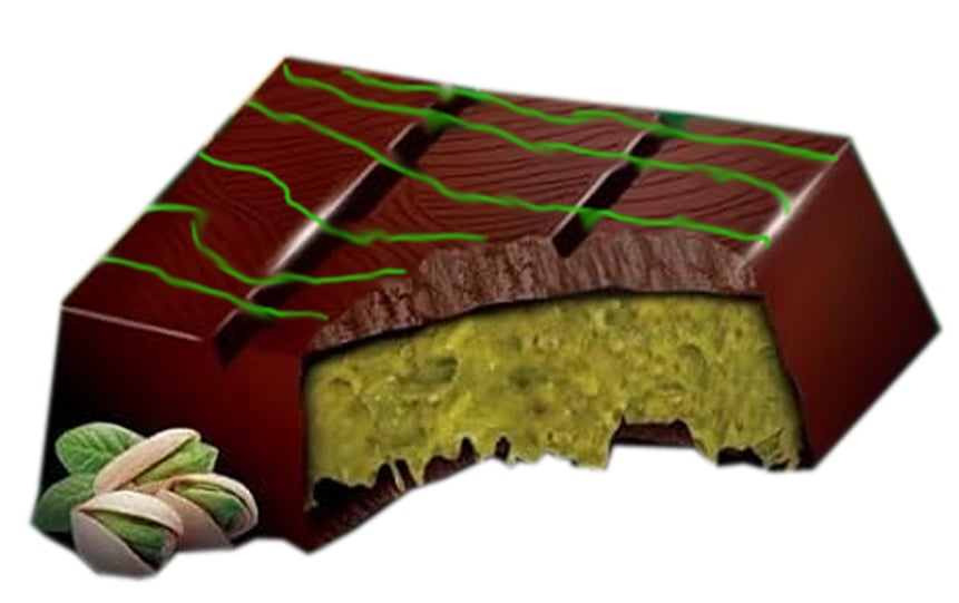 et avec une pâte de pistaches aromatique.