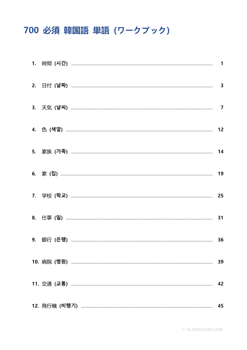 700 必須 韓国語 単語 (ワークブック) [PDF]