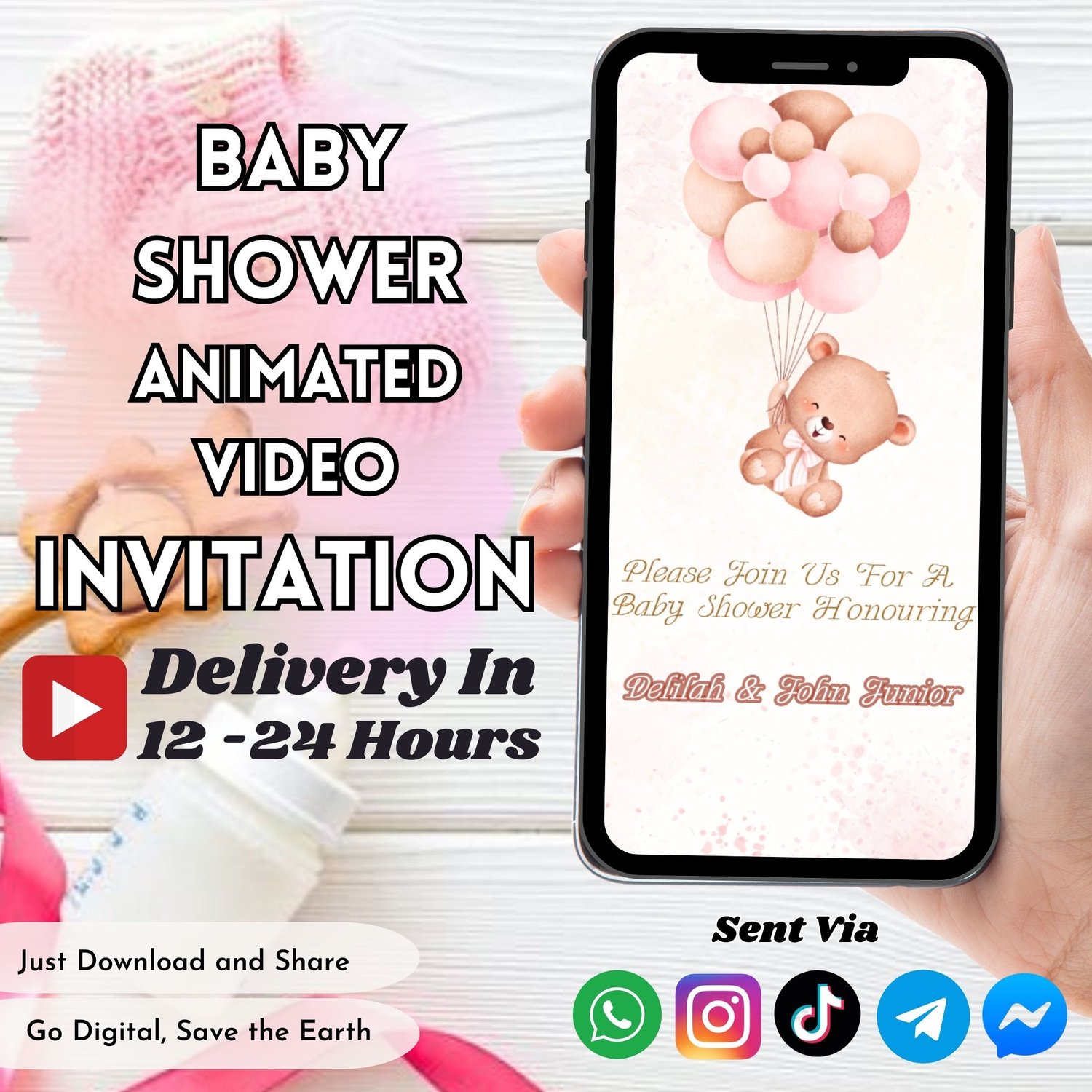 With a charming bear theme, the invitation showcases adorable animations of cuddly bears dressed in soft pink, making it the ideal choice for a baby girl shower. We understand the importance of creating a memorable and unique experience for your loved ones, which is why this animated video invitation is the perfect blend of creativity and convenience.