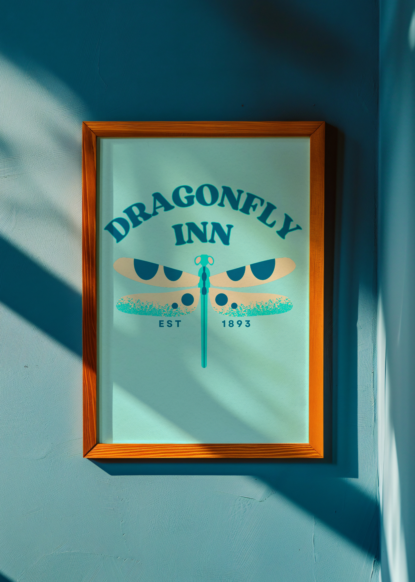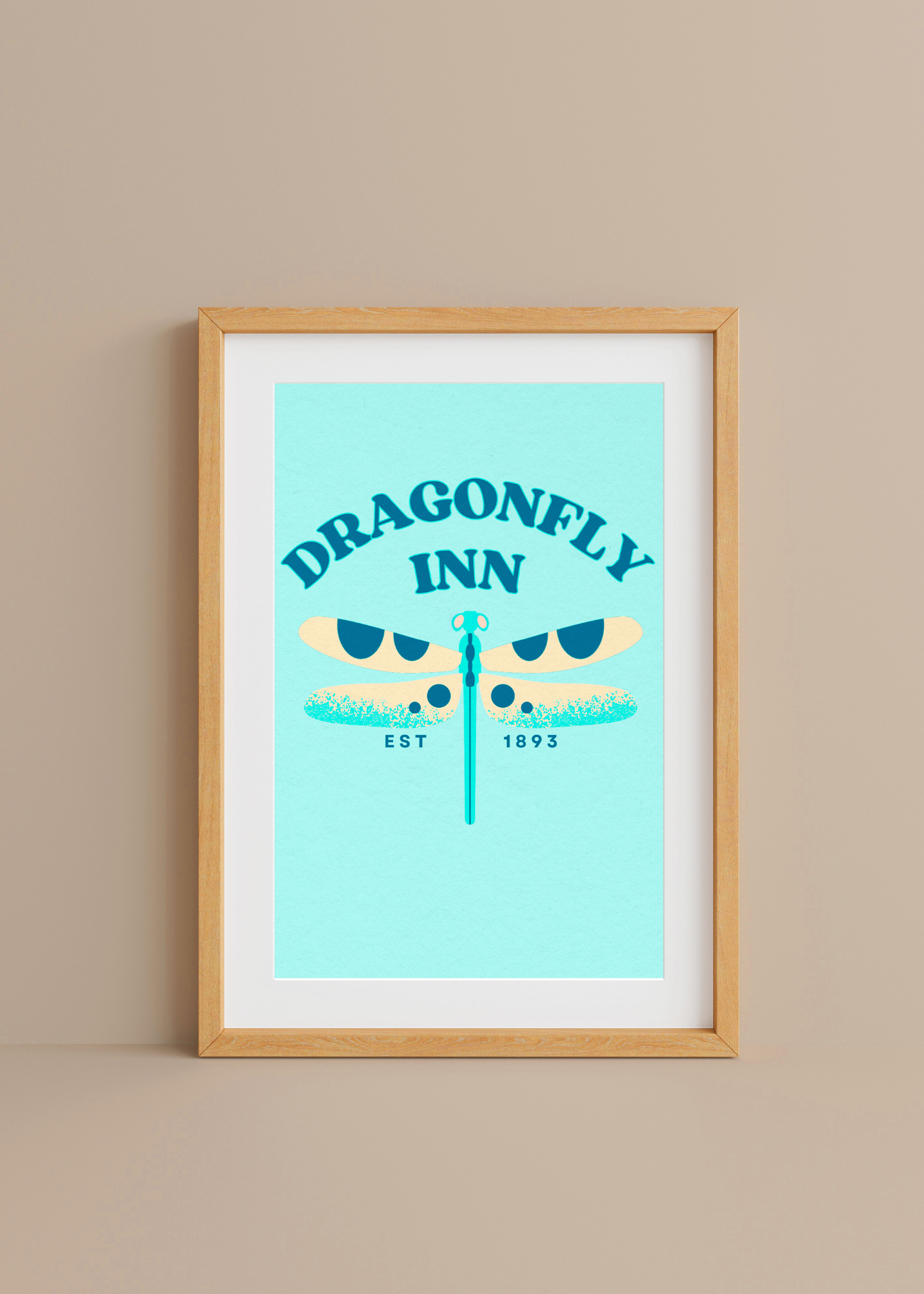 Dragonfly Inn— Crisp, calming, and full of joy—this bright teal print pays tribute to Lorelai’s fierce determination and the undeniable heart of the Dragonfly Inn. A creamy dragonfly with deep navy details takes center stage, its elegant form poised like it could take flight from the page. “Dragonfly Inn” is scrawled in a bold navy font across the top, standing out against the refreshing background like Stars Hollow’s welcome sign on a sunny day. At the bottom, est. 1893 roots it in history. It’s a clean and modern take on a beloved piece of Gilmore Girls lore—perfect for fans who carry Stars Hollow in their hearts and believe in chasing their dreams with coffee in hand.