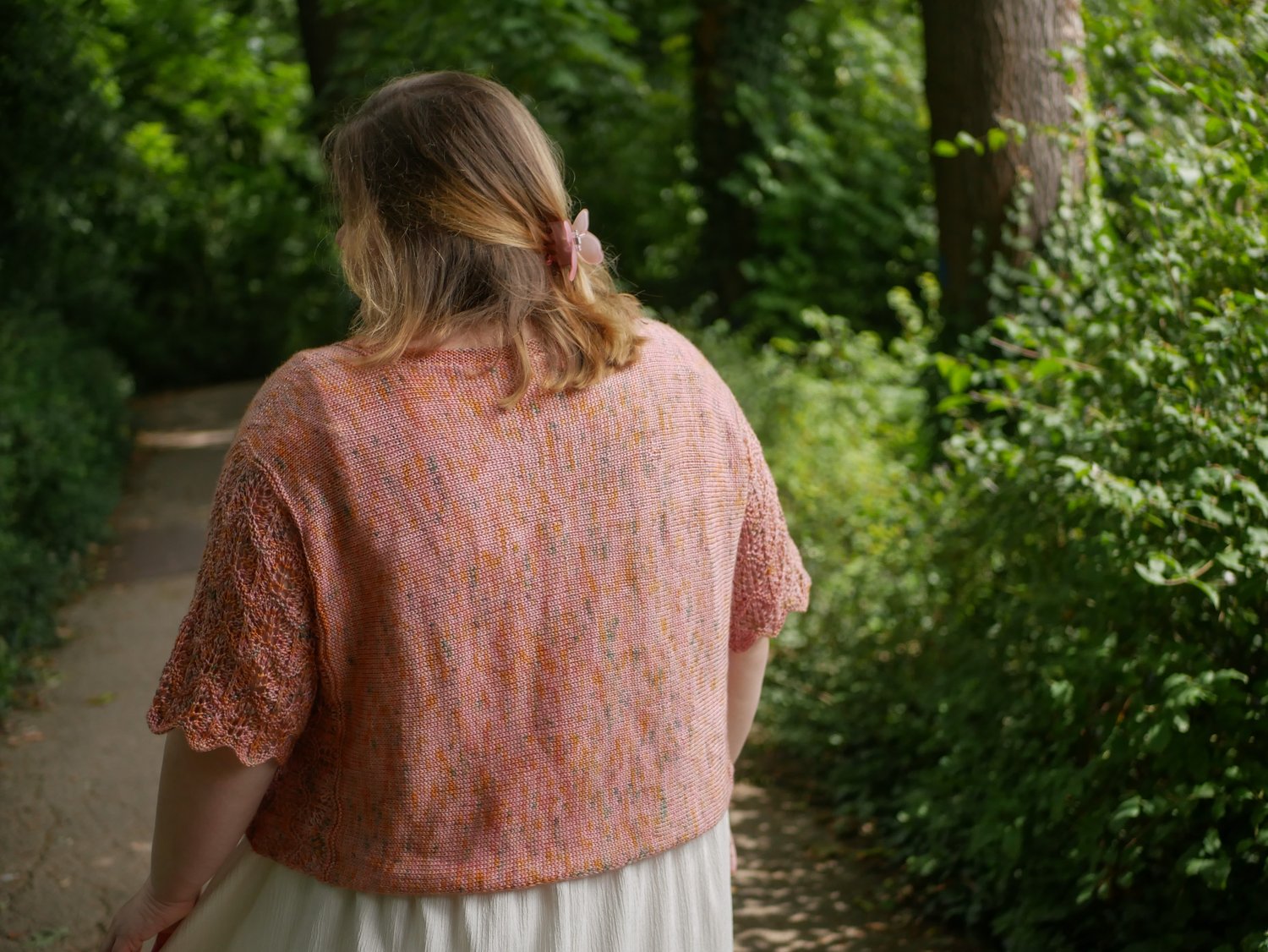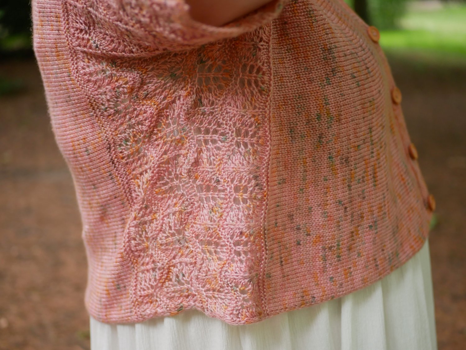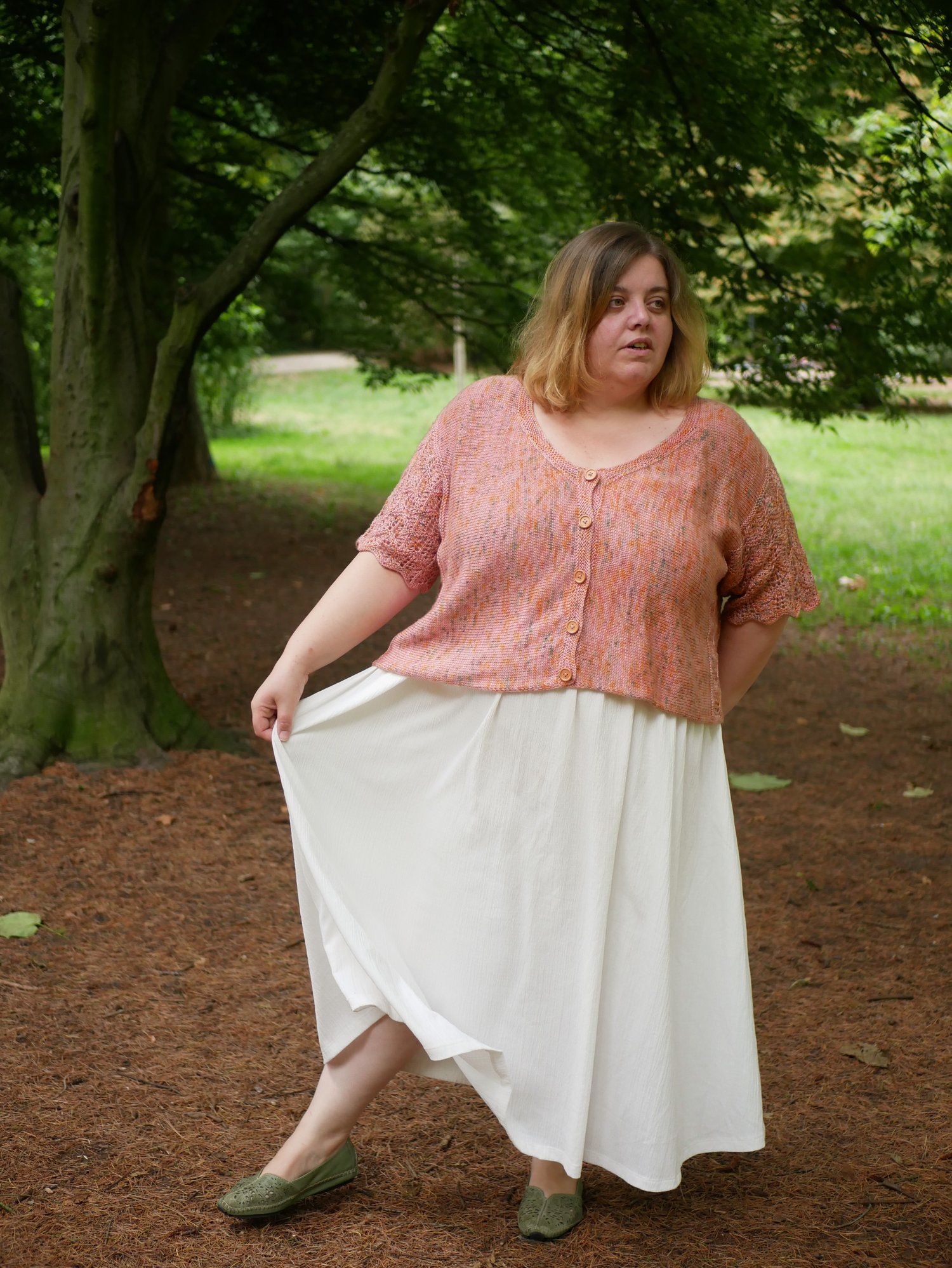 Ondes est un gilet de mi-saison à la construction amusante, orné d’une jolie dentelle ondulée.