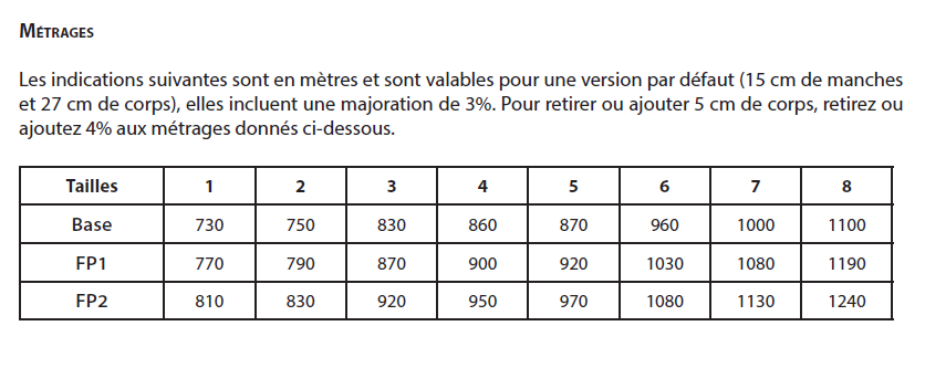• Aiguilles circulaires : 3.75mm pour l’essentiel du corps. Des 3 mm pour toutes les finitions en point mousse. Des 4 mm pour le montage des manches.