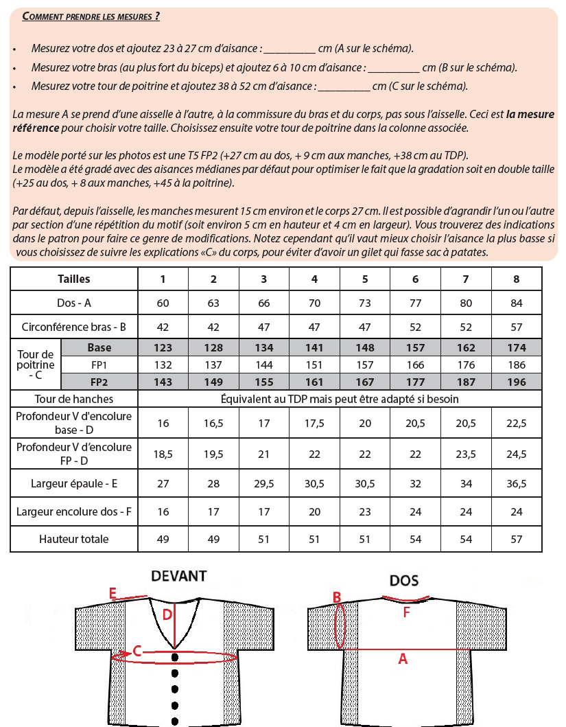 => Voir le tableau de mesures sur l’une des dernières images à gauche.