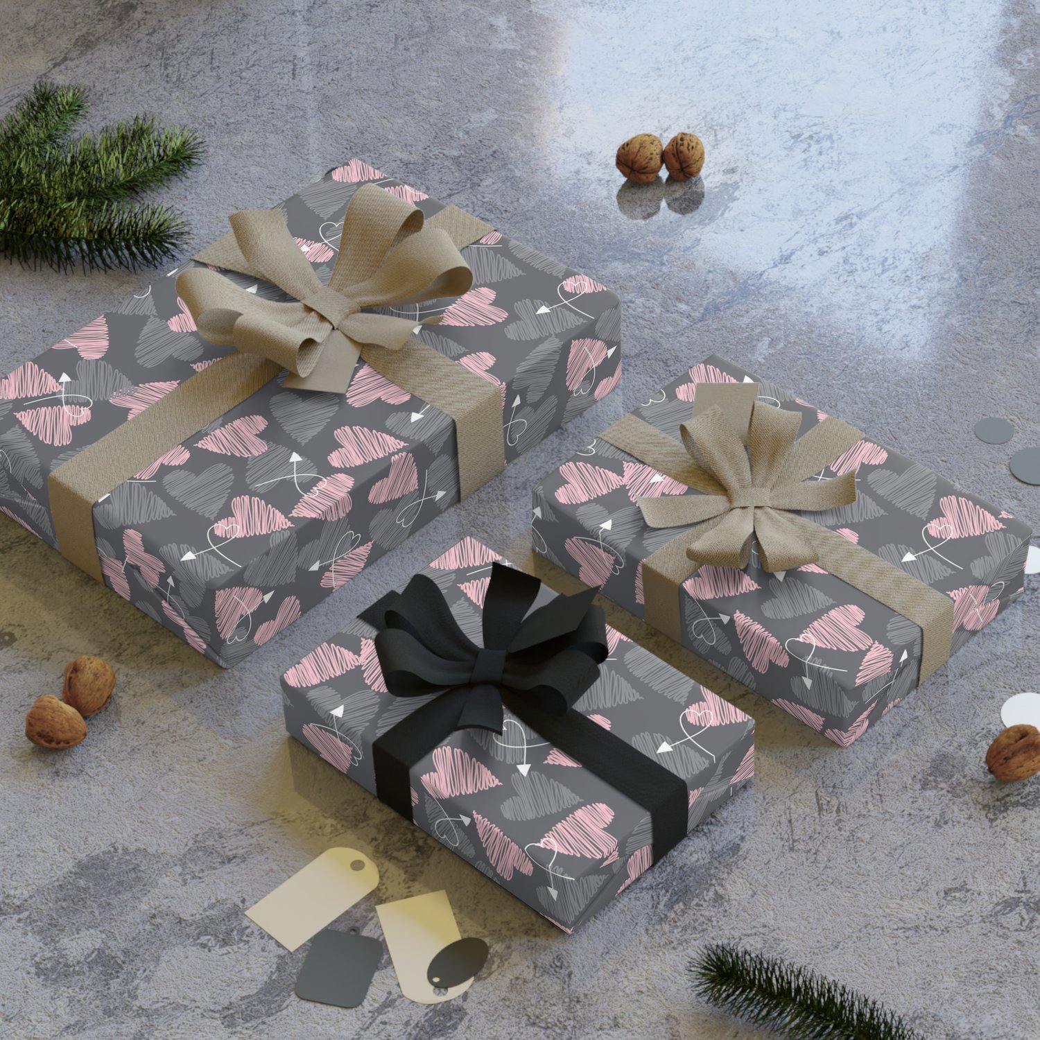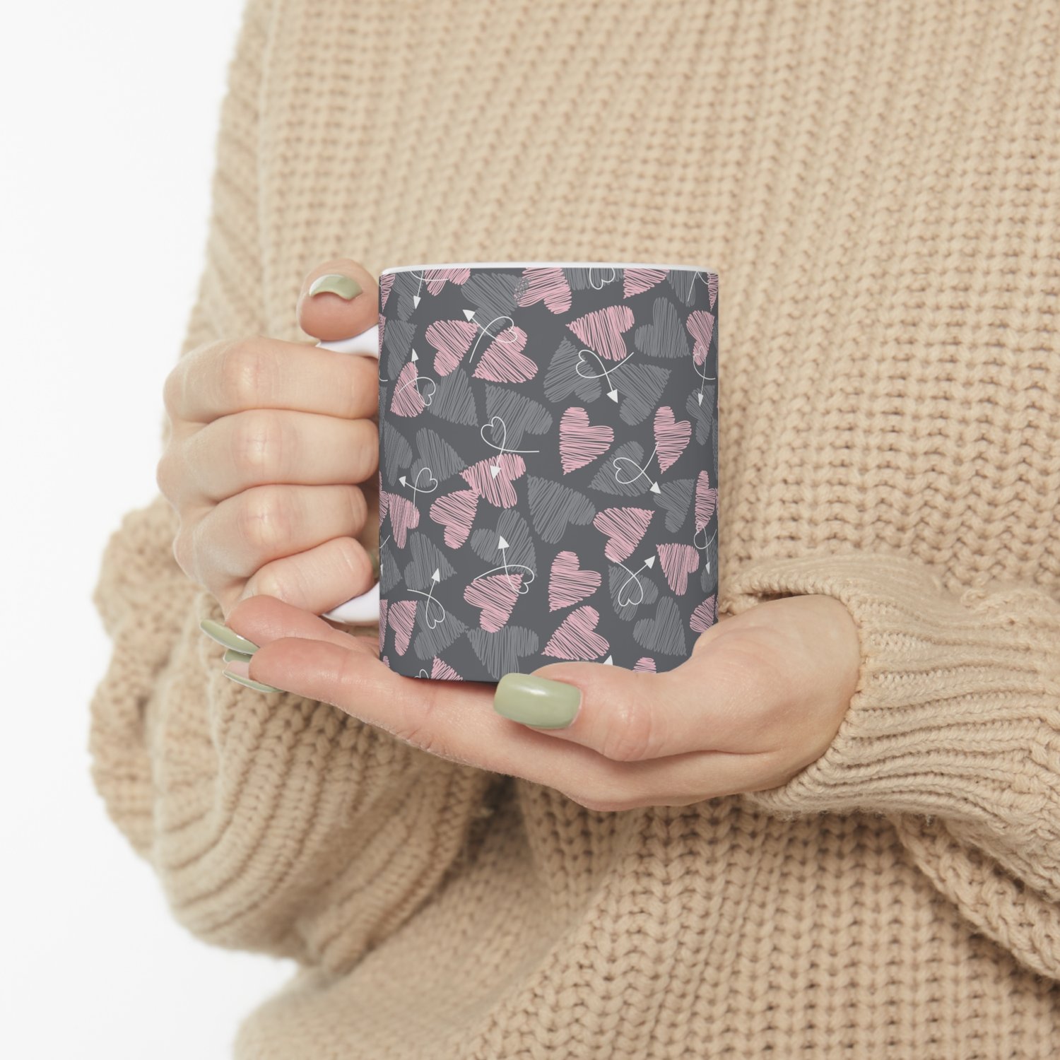 Grey and Pink Hearts Seamless Pattern
