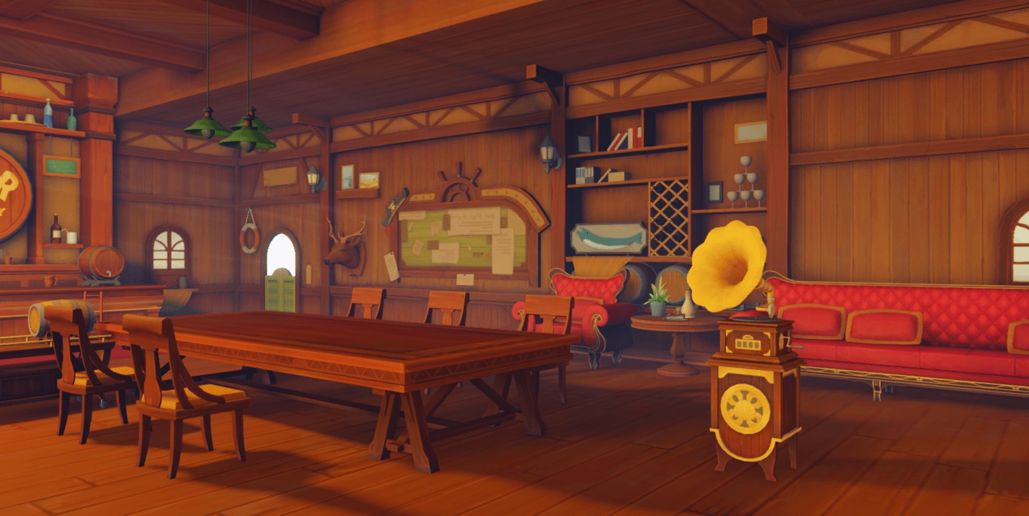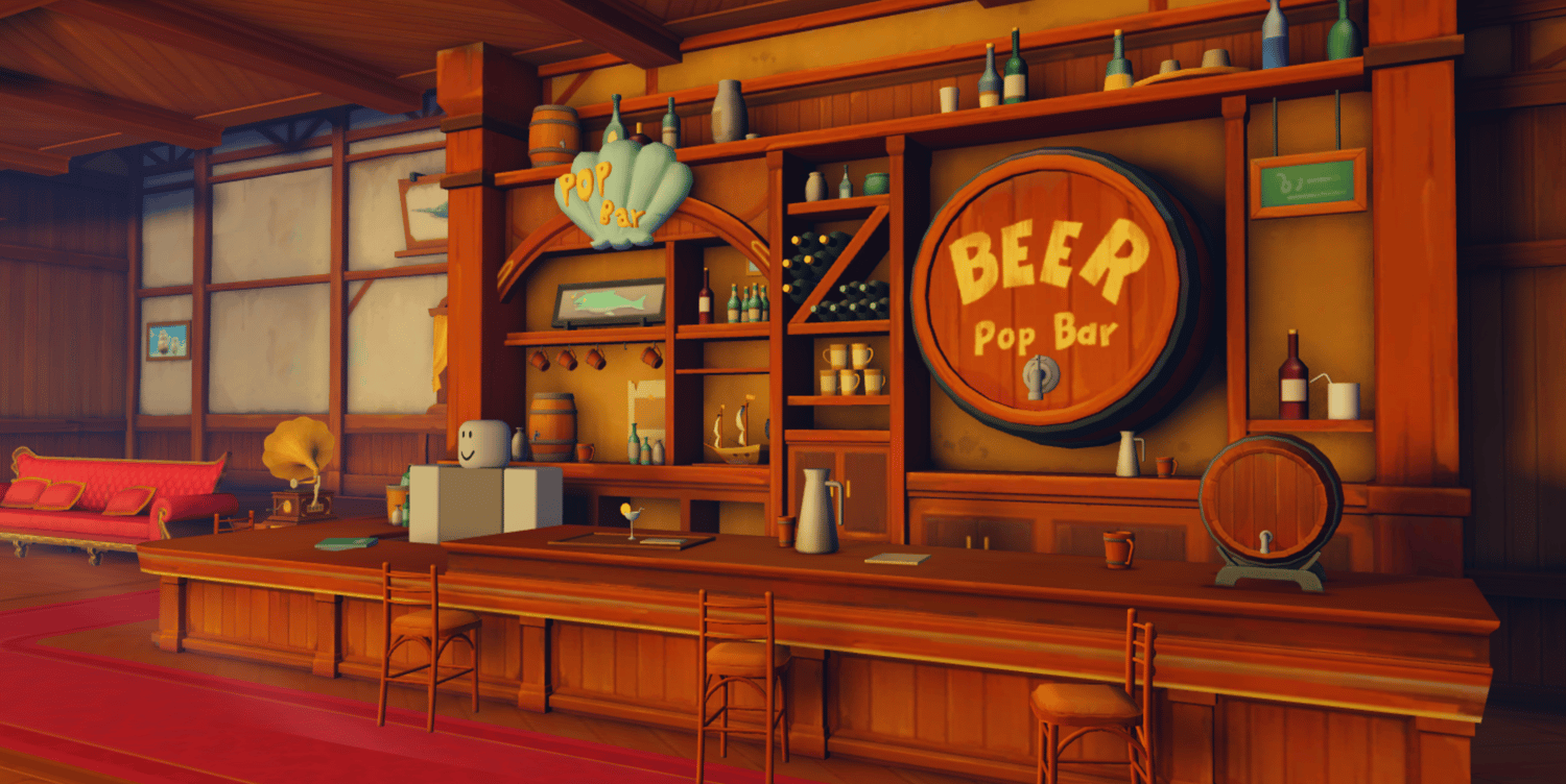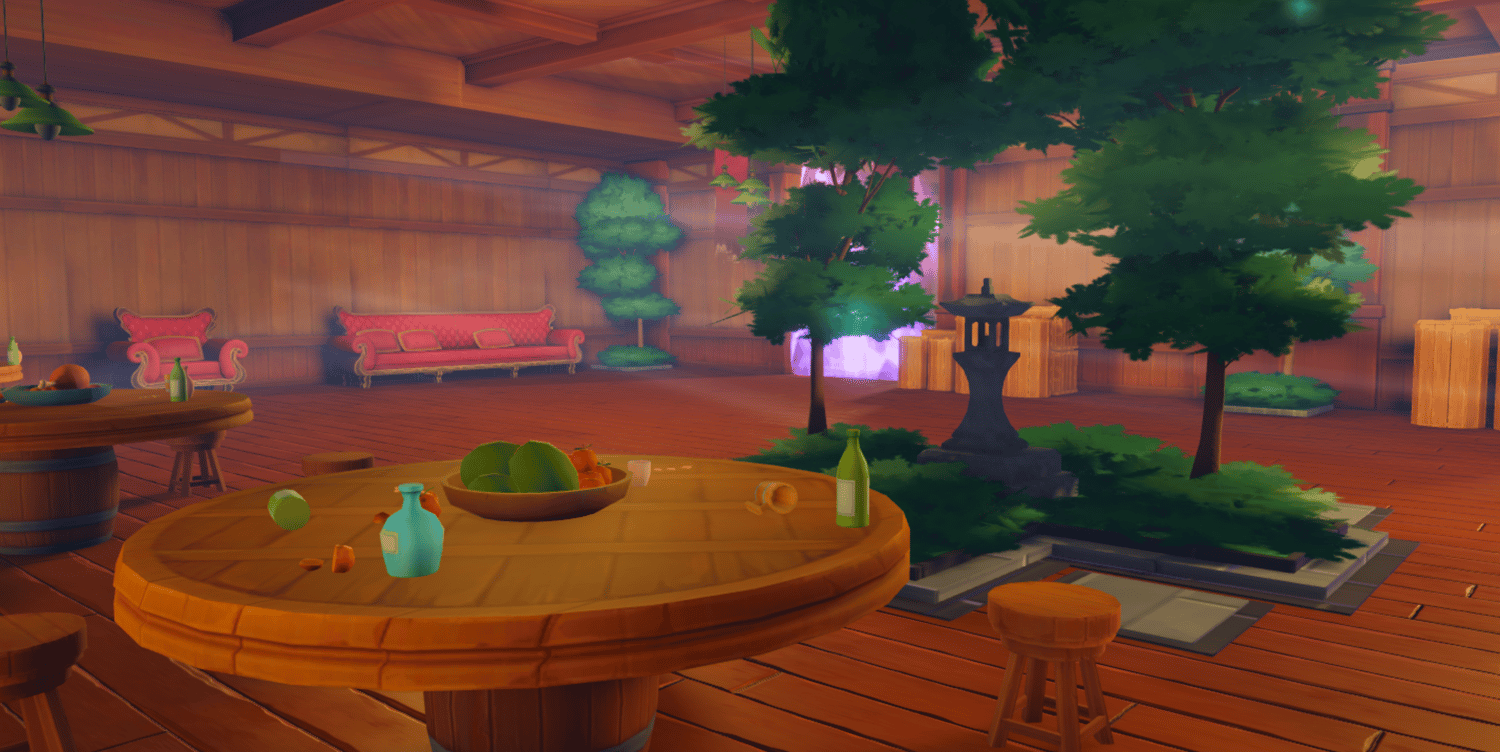 This detailed build features a spacious wooden interior filled with tables, chairs, and cozy seating areas, perfect for roleplay and gatherings. The tavern includes a fully stocked bar, decorative props, glowing crystals, and a magical portal entrance to enhance immersion. Warm lighting and fantasy-inspired details make it ideal for guild halls, RPG games, or social hangouts.