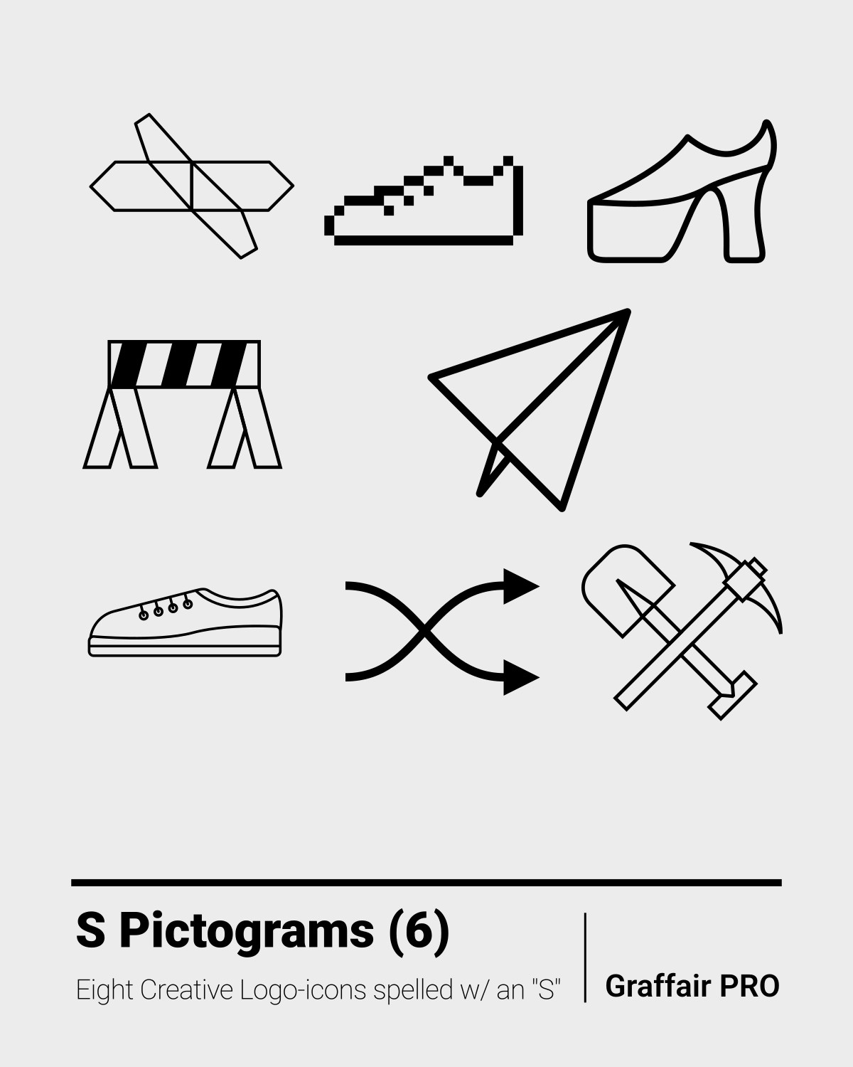 S Pictograms (6): The 6th set of 8 pictograms, each beginning with an "S".