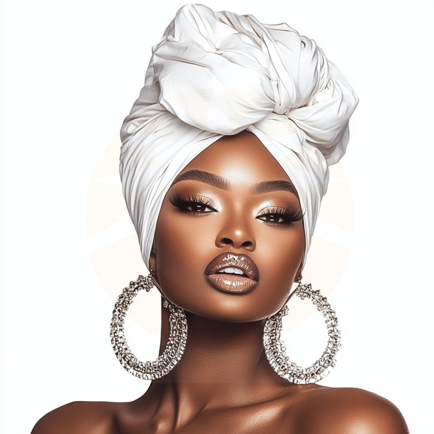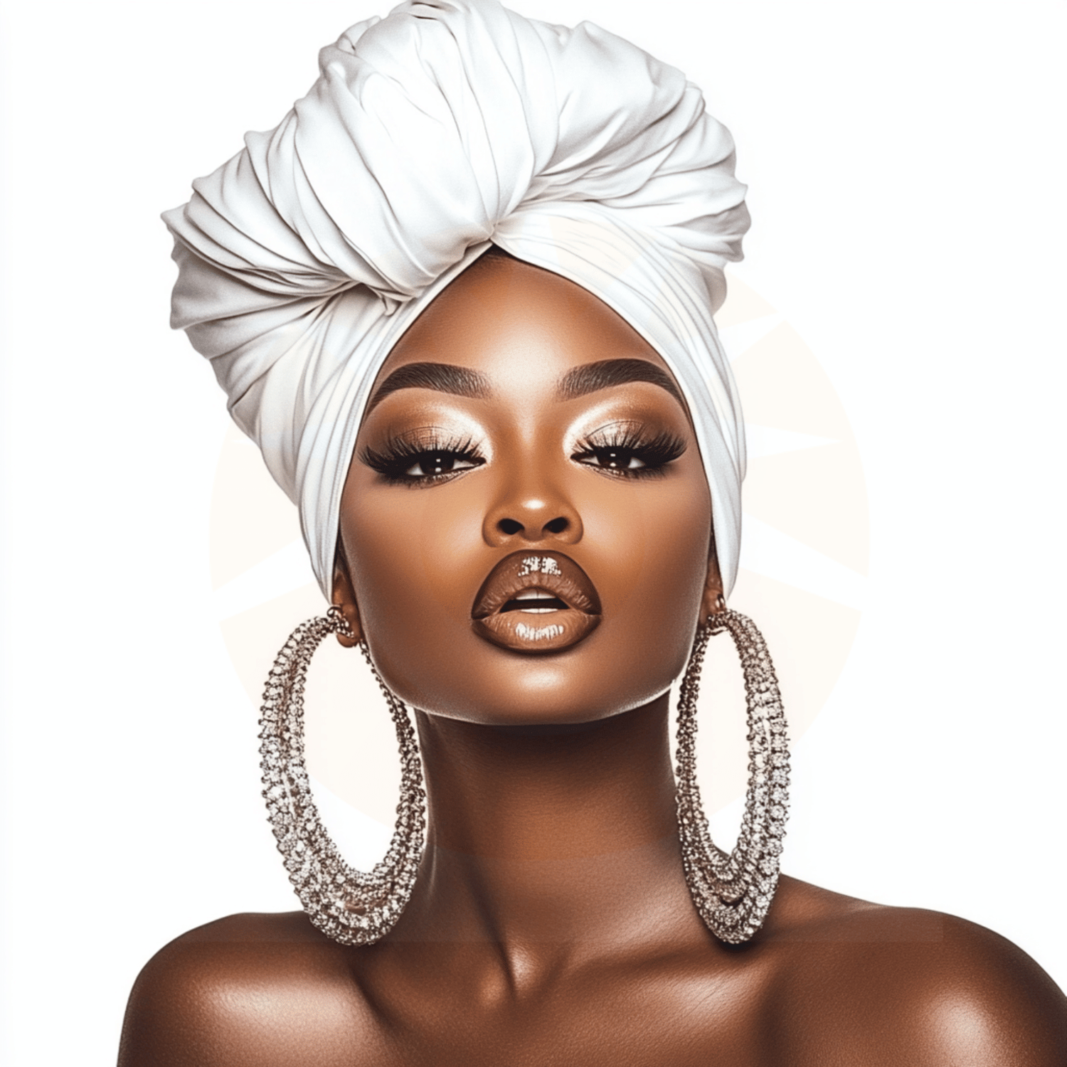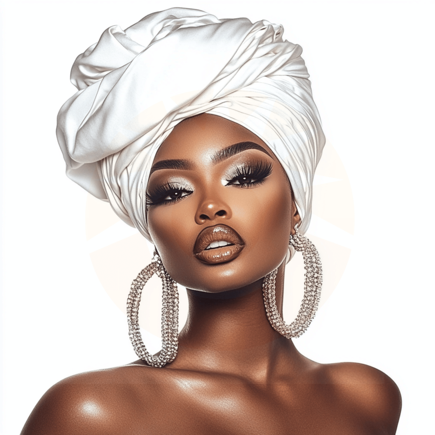 Unveil the allure of elegance and style with the All Star White Collection—a set of 4 premium PNG images that capture the essence of bold beauty and modern sophistication. This exclusive collection showcases stunning portraits of a woman adorned with a stylish white headwrap and statement jewelry, perfect for enhancing any creative project.