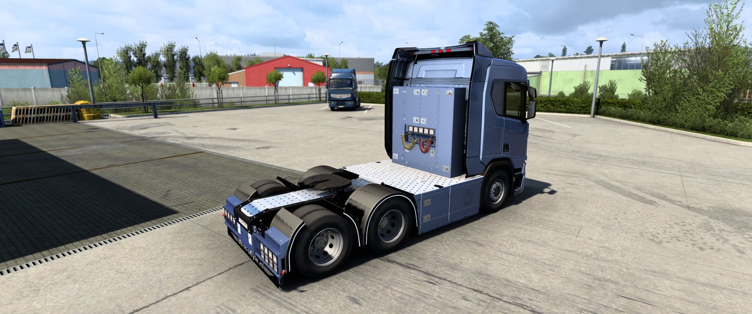 MOD description: Chassis cover, black, painted, chrome for Scania Nextgen 6x2, 6x4 long chassis