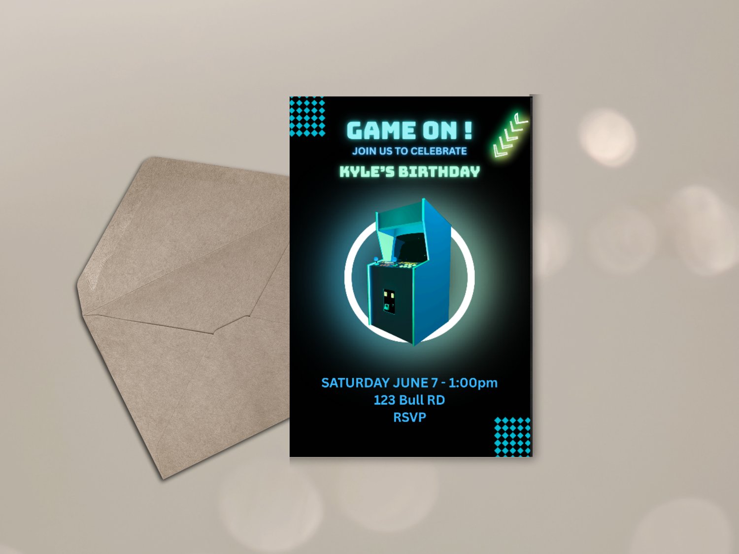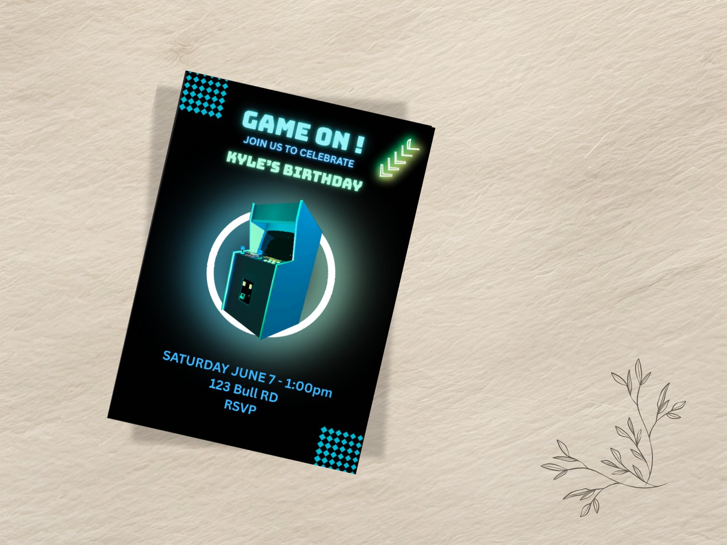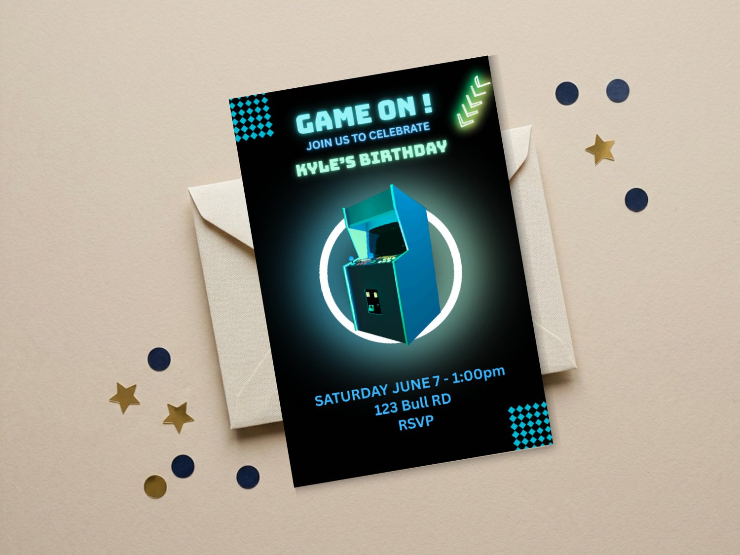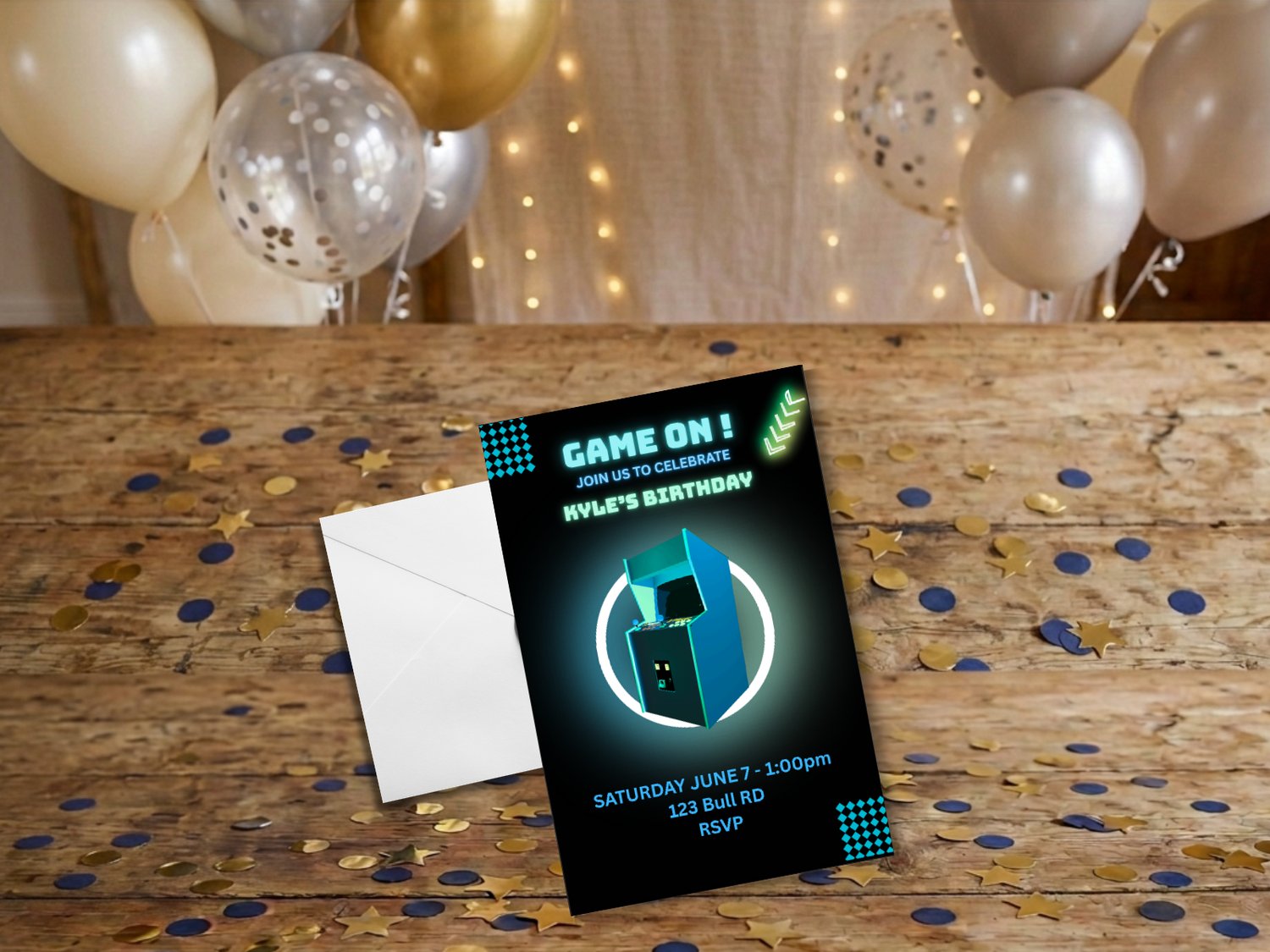 Game On Editable Arcade Birthday Invitation – 5x7 Digital Download