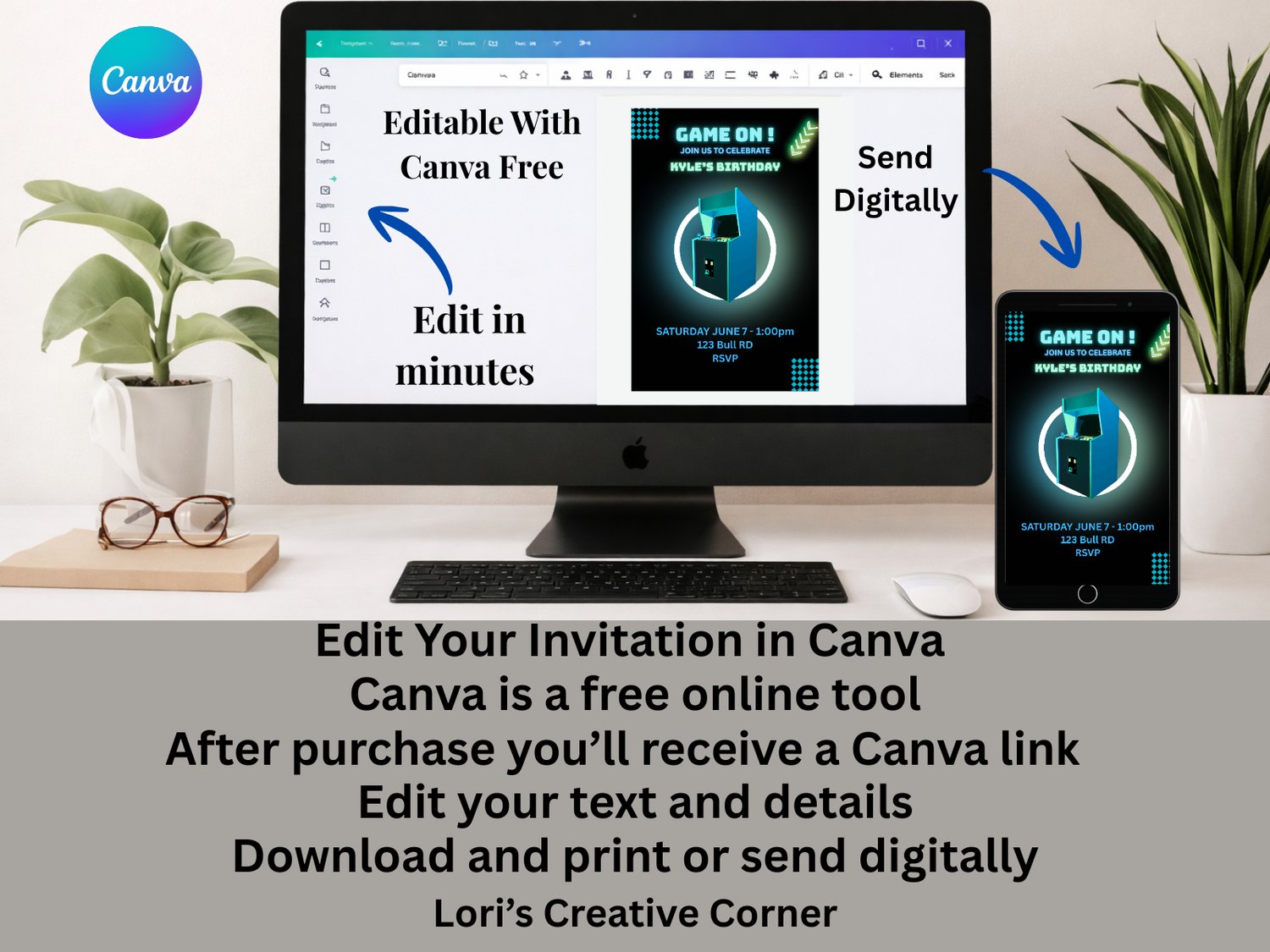 Tired of boring birthday invites that don’t match your party theme? Level up your celebration with this fun and vibrant Game On birthday invitation! Perfect for gamers and arcade lovers, this editable 5x7 digital invite features neon colors and a retro game design your guests will love. Easily customize the details in Canva and download it instantly – no waiting, no stress, and no last-minute runs to the store.