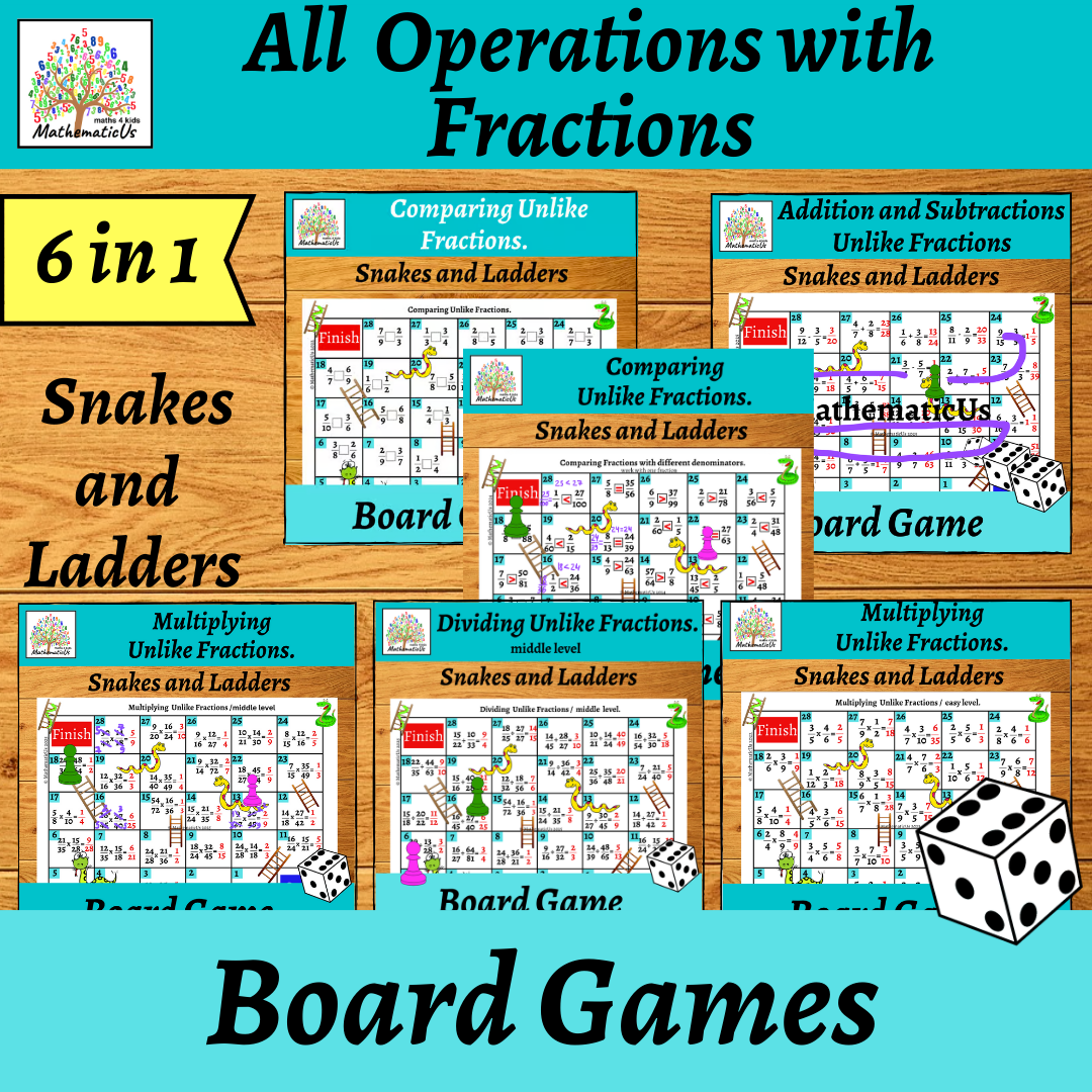 All Operations with Unlike Fractions Snakes and Ladders Board Games