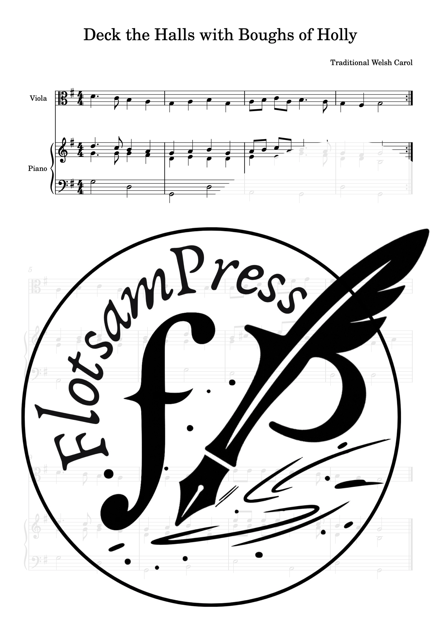 Deck the Halls with Boughs of Holly - Beginner/Easy Viola with Piano Accompaniment (PDF Download)