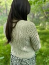 A Pastoral Sweater features lace cables and a tailored fit. A tribute to our knitting ancestors, who made beautiful things out of very little, simply because.