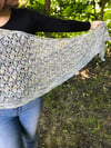 The striking Aasleagh Falls inspired this shawl with lace cascading through the body of the shawl like the water does down the falls.