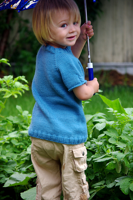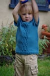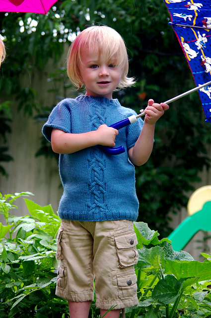 Fratello is a seamless raglan short-sleeved jumper. It is knit from the neckline down in the round. A cable is worked down the front of the jumper. Fratello is finished with ribbing and short sleeves.