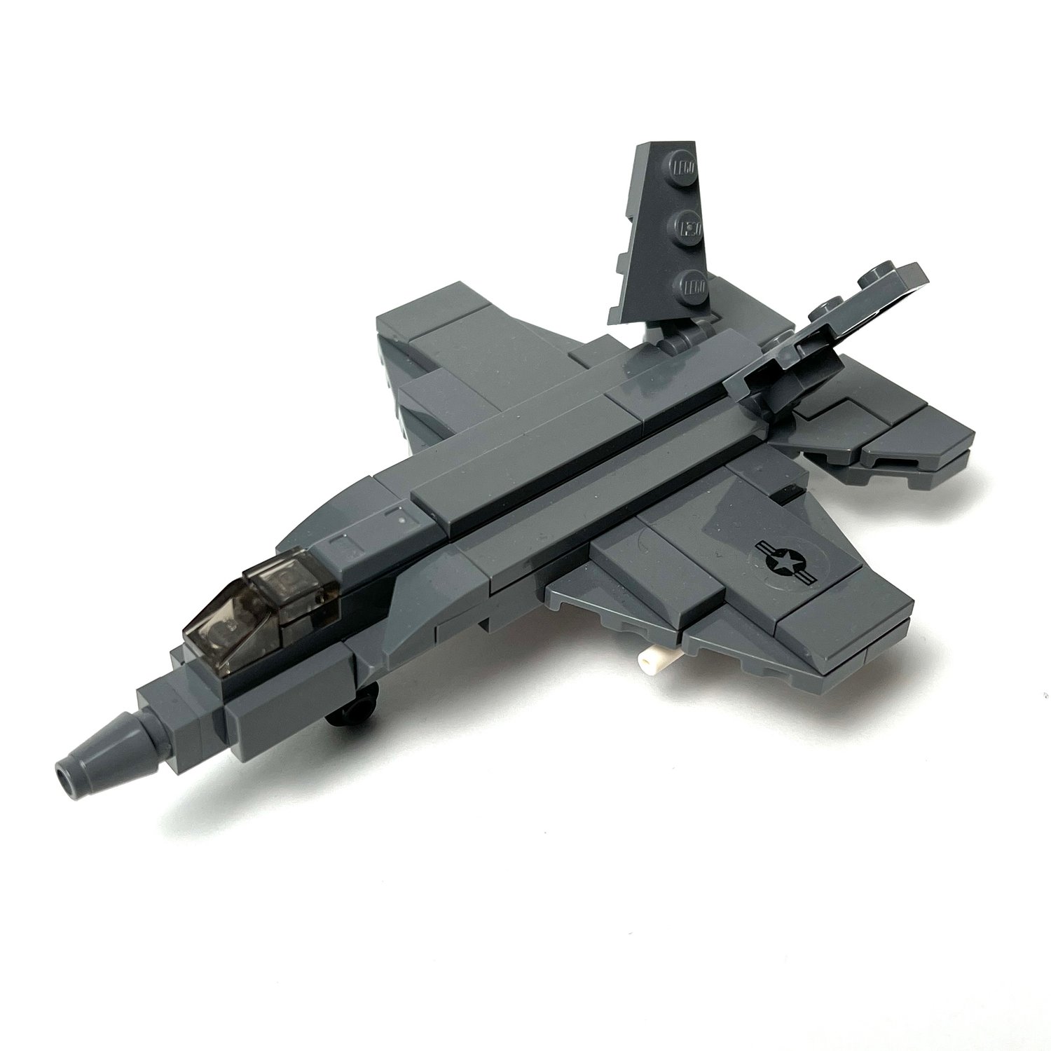 Here's our version of this aircraft in 1:120 scale, and was made to be compatible with nano figures, or nano soldiers from Brickmini. You can attach any combination of payload to the underside of the wings, and you can remove the wheels for flight mode.
