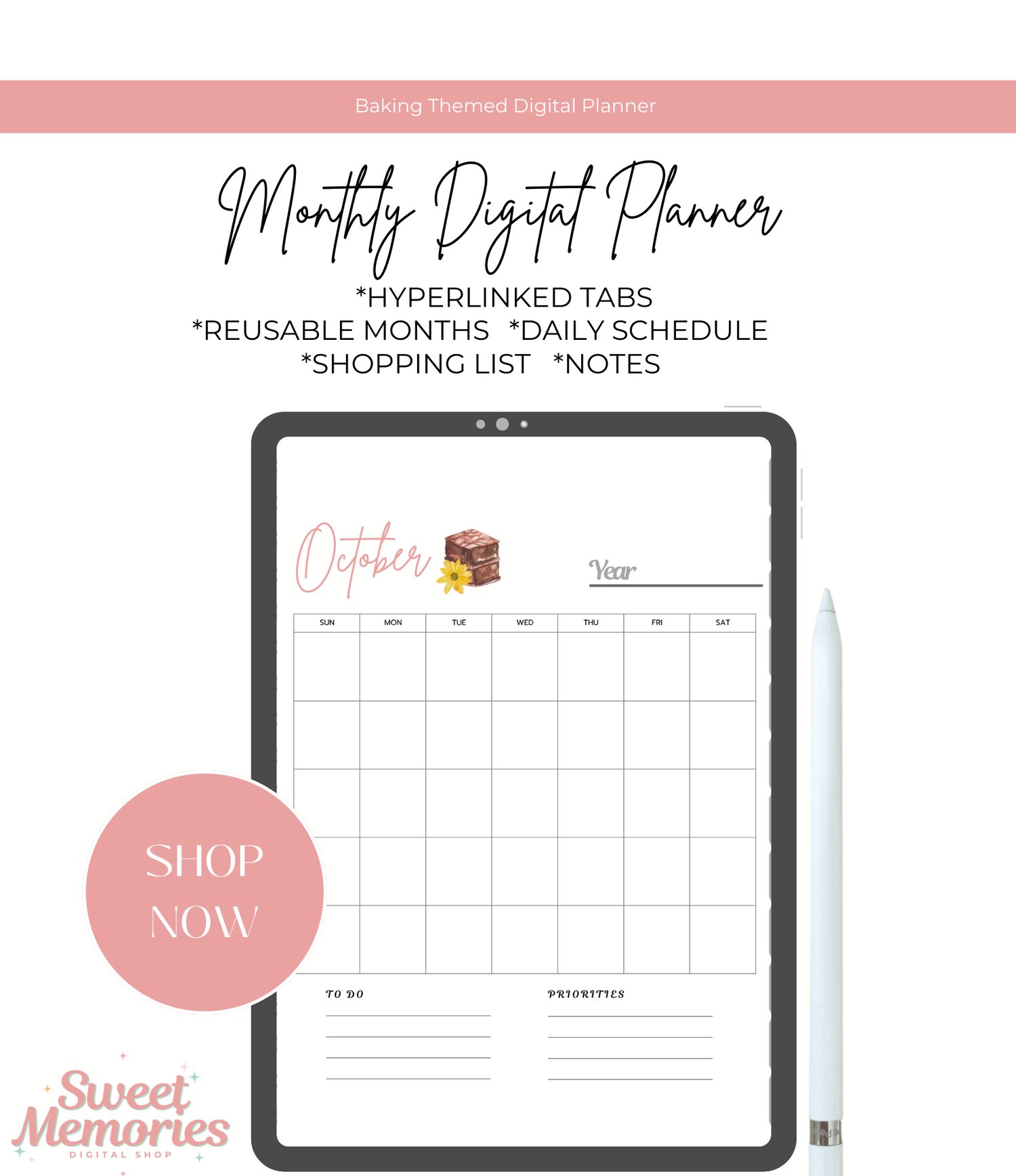 Love to bake or just enjoy tasting sweets? This digital monthly planner is the perfect match for you!