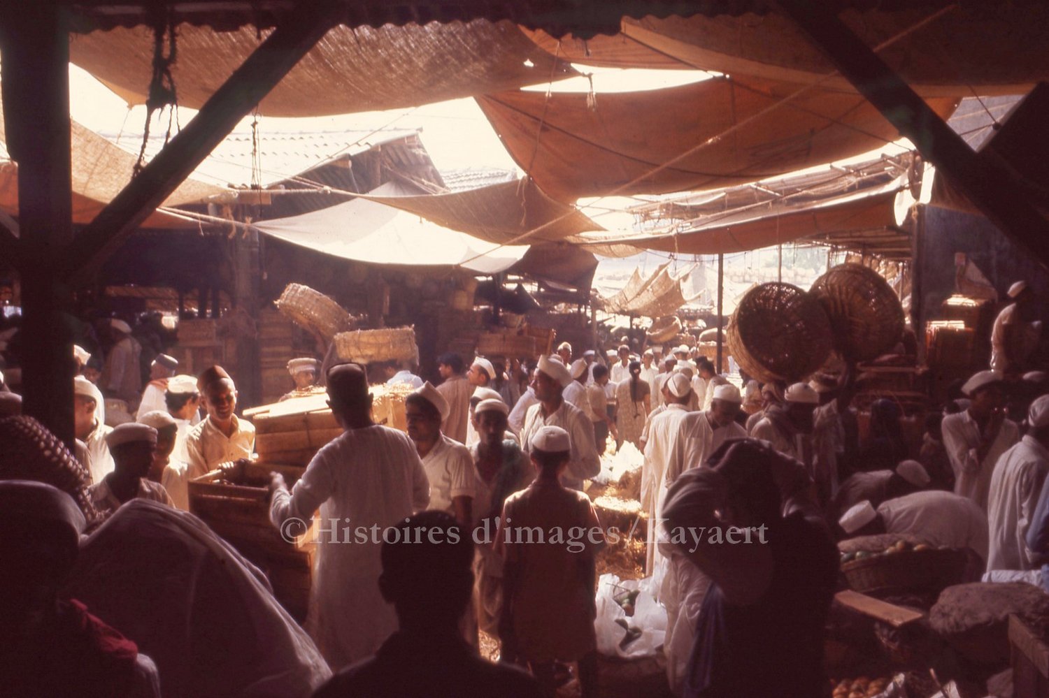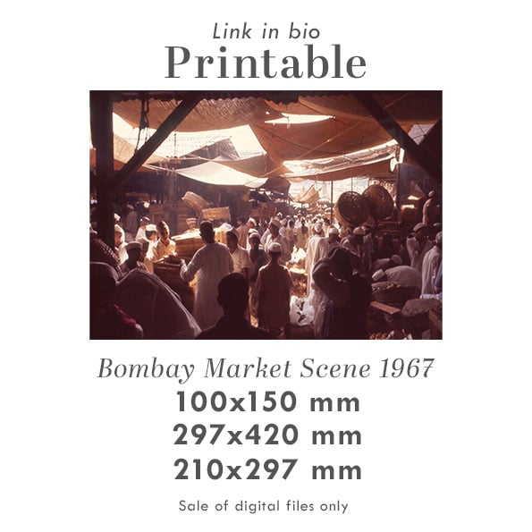 Step into the vibrant streets of Bombay in 1967 with this rare color photograph by Robert Kayaert. Capturing the lively atmosphere of a traditional Indian market, this image offers a glimpse into everyday life—colorful stalls, bustling vendors, and timeless street scenes. A beautiful document of urban India during the 1960s.