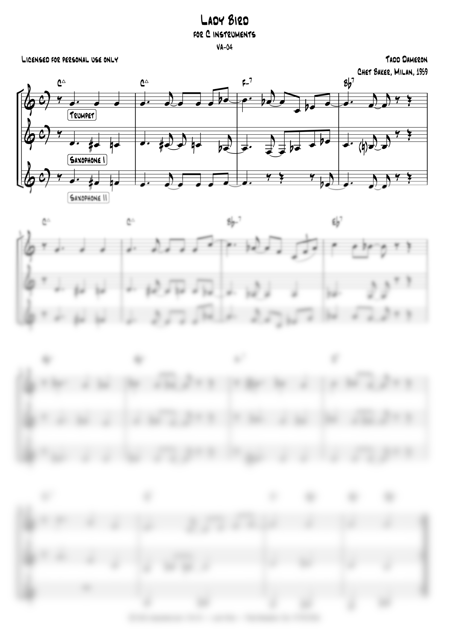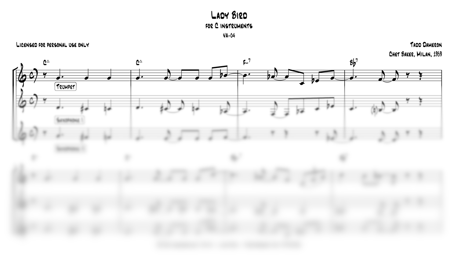 Lady Bird - Chet Baker (1959) - full transcription for C instruments