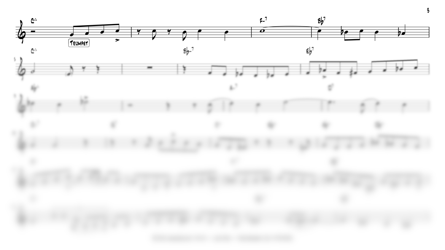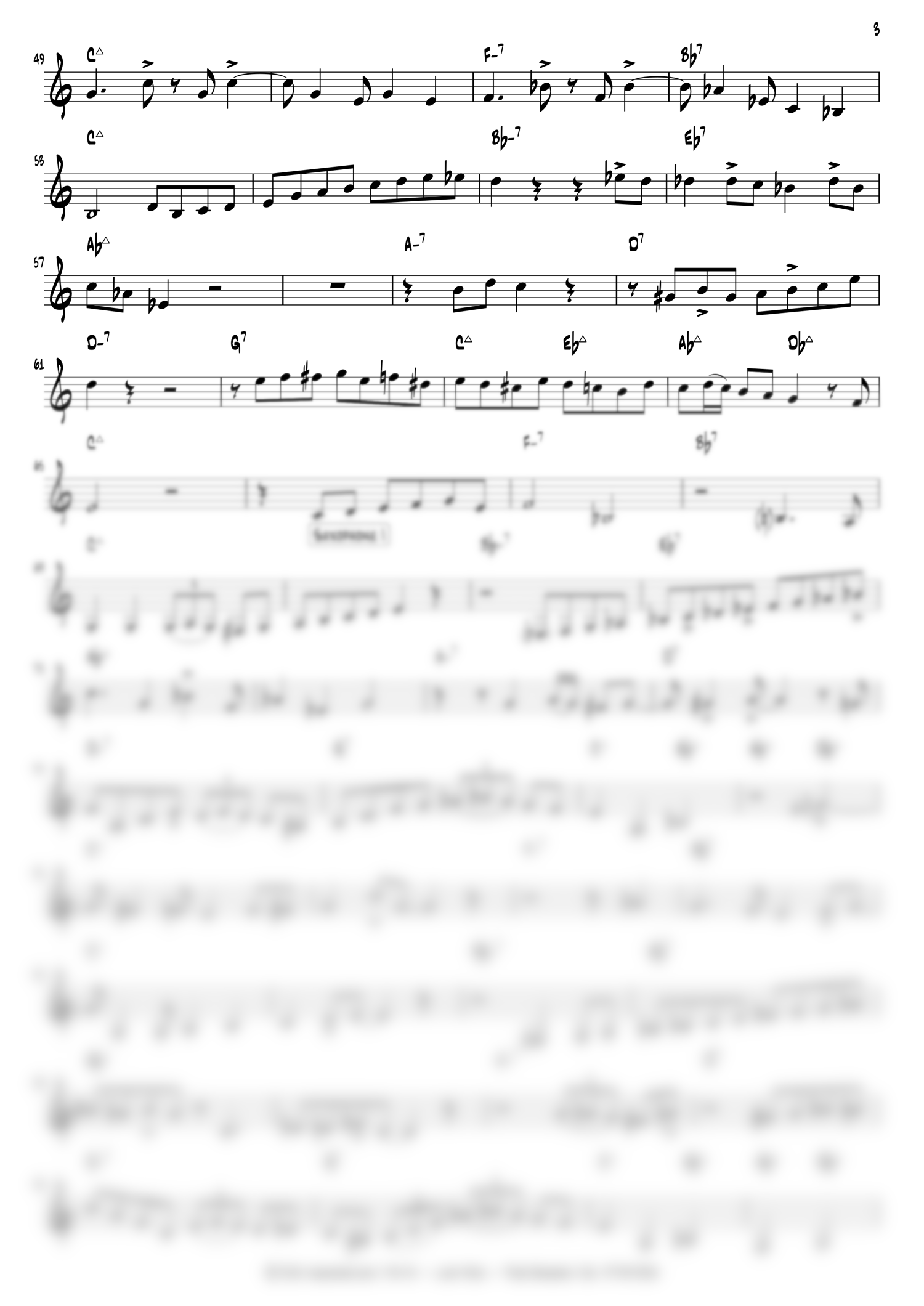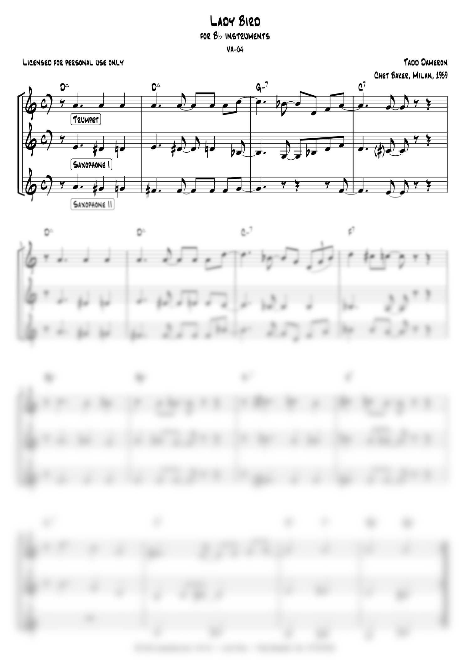 Full score including the arranged head for trumpet and two saxophones, trumpet solo, saxophone solos, piano solo, trading fours, and the head out.