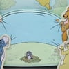 - Scène dynamique façon dessin animé, avec personnages en relief