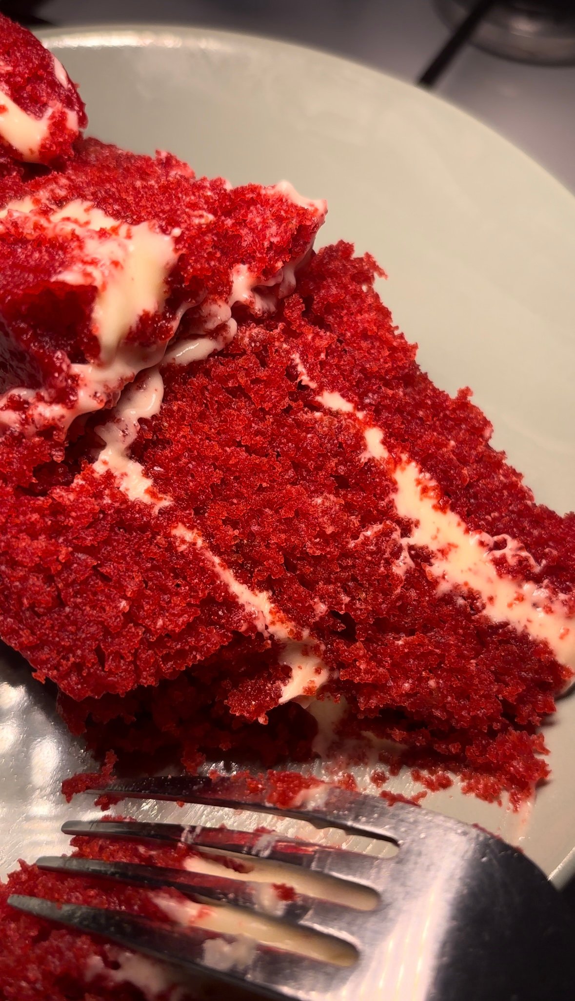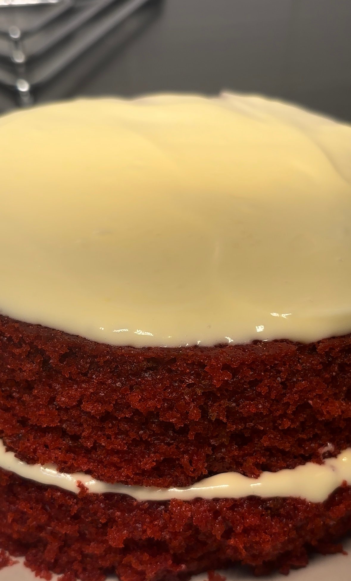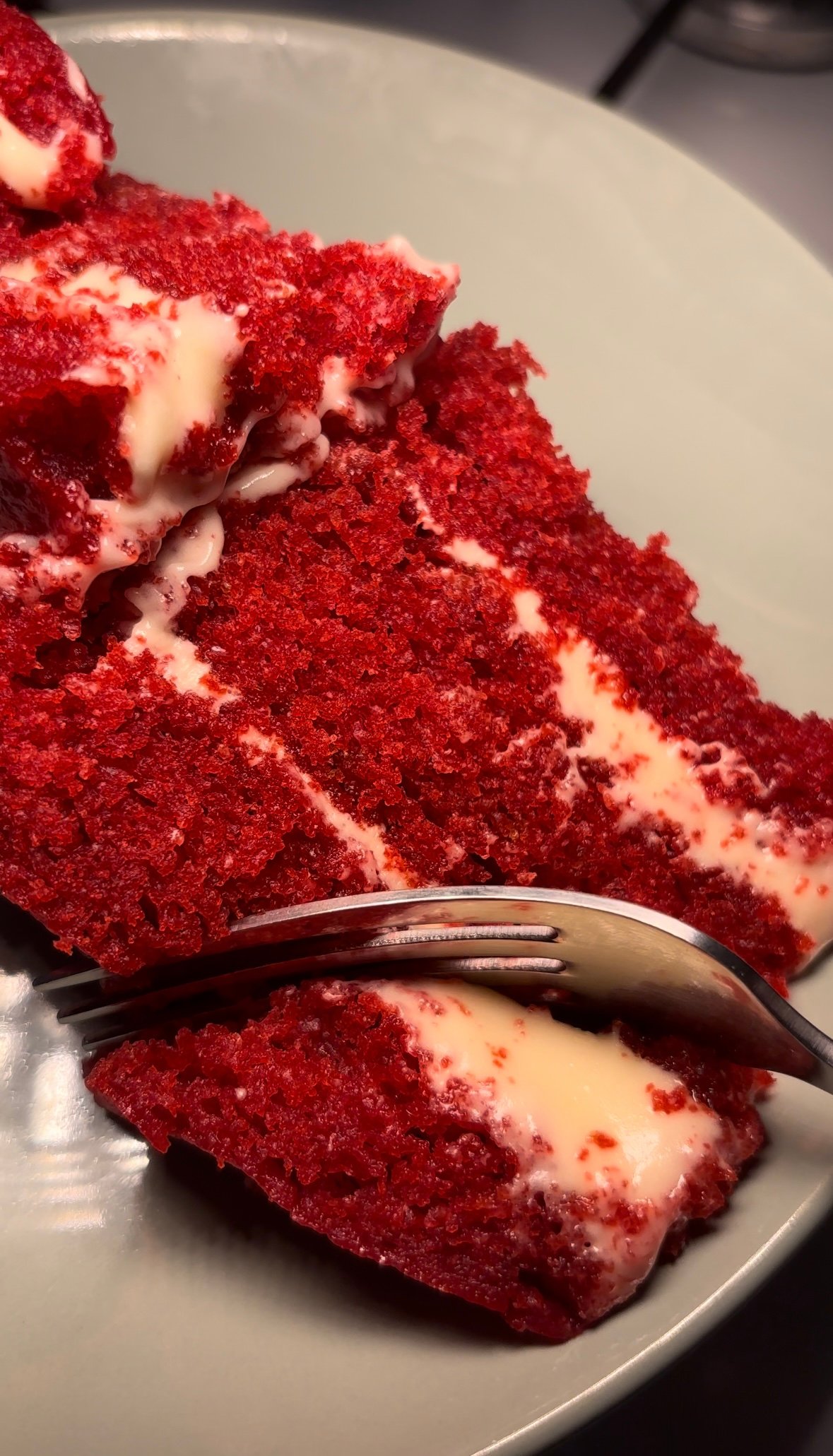 Learn how to make a rich, soft, and vibrant red velvet cake with a smooth cream cheese frosting. This easy-to-follow recipe creates a moist cake with a deep red color, light cocoa flavor, and perfectly balanced sweetness.