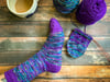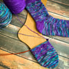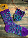 Yarn: The Fiber Seed Sprout Sock, 90% Superwash Merino wool, 10% nylon, 510 yd/4.8oz (465 m/136 g): 1 skein each in Andromeda and Ultra Violet