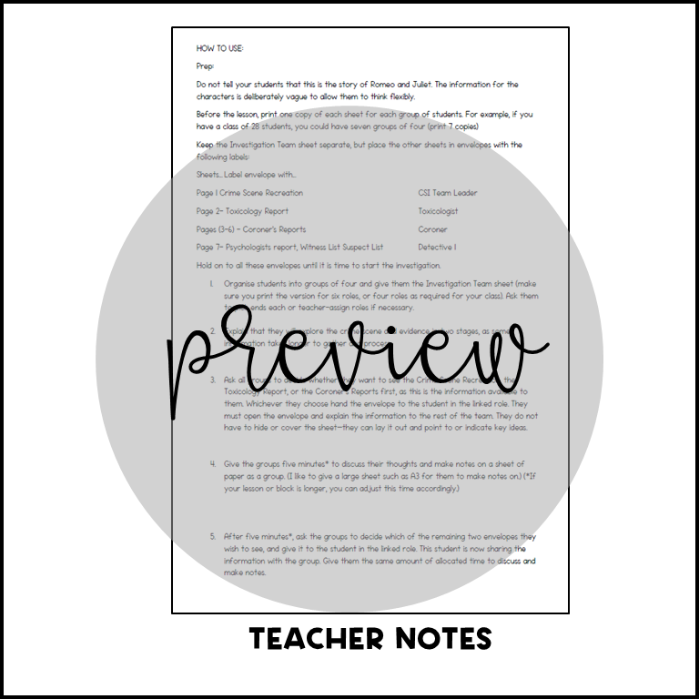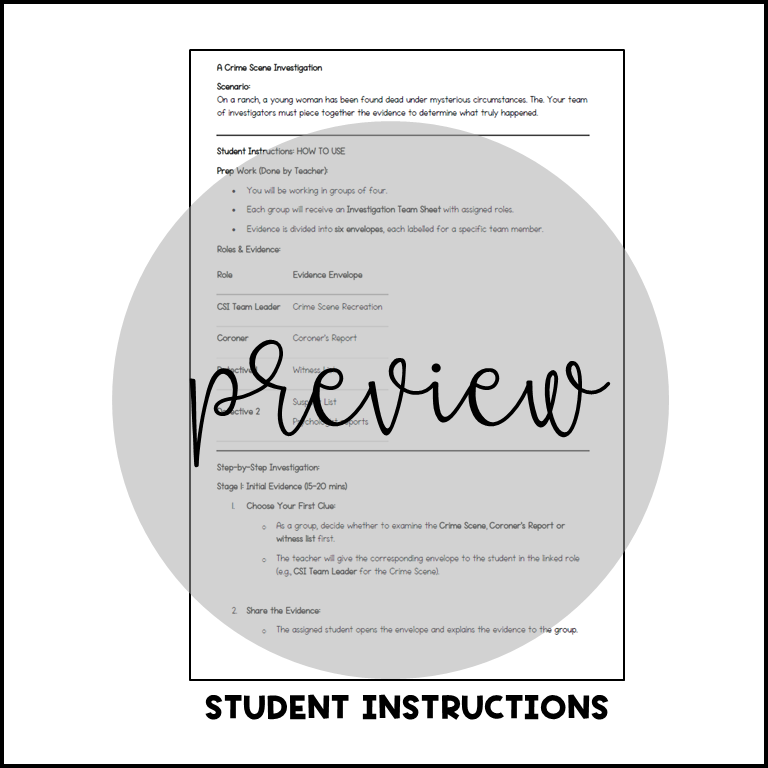 āļø Perfect for groups of 4ā6 students ā adaptable for different class sizes (add more detectives) and lesson timings