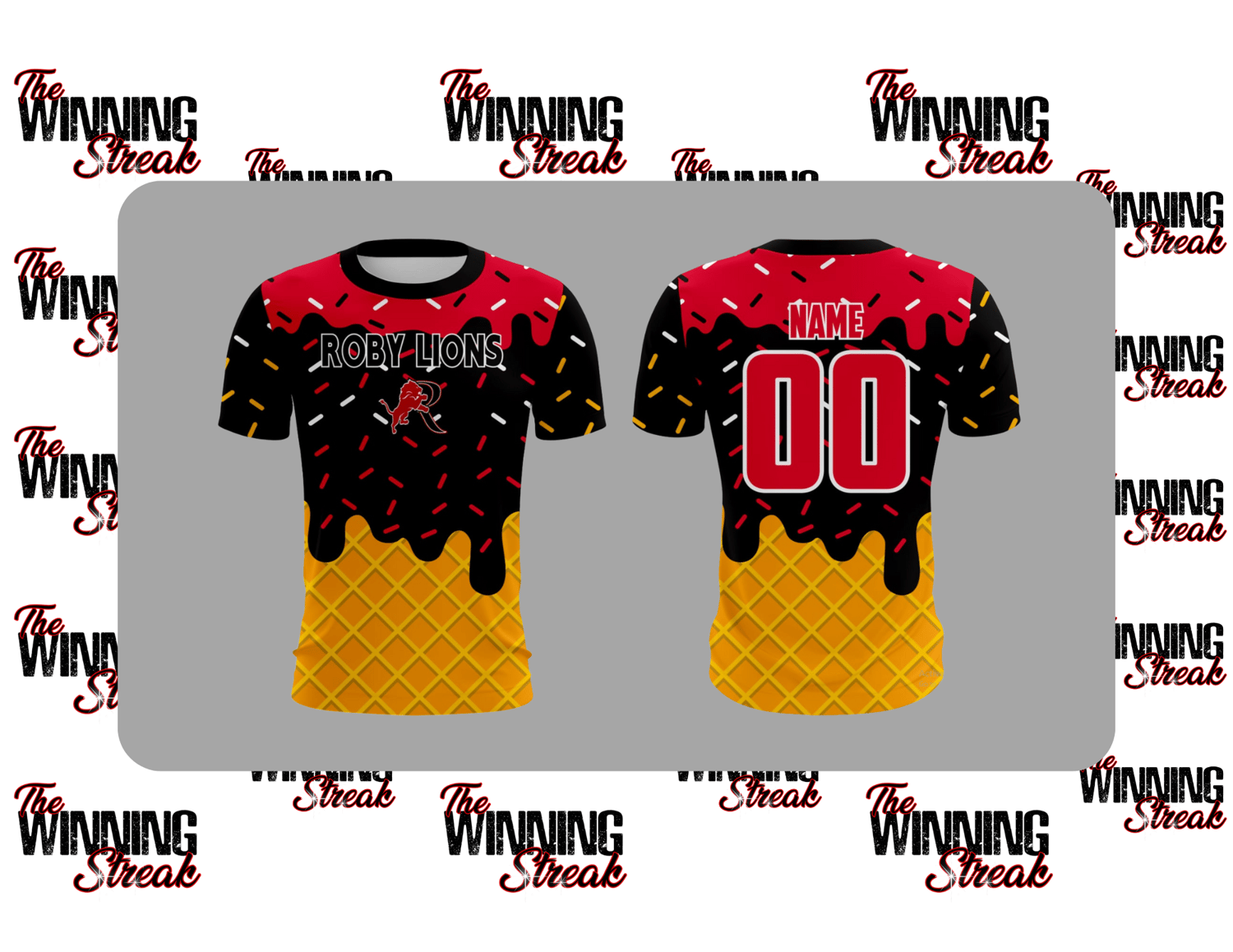 Stand out in the crowd with our bold Roby Lions tee! Personalize the back with your name and number in vibrant red for a custom look that's all yours.