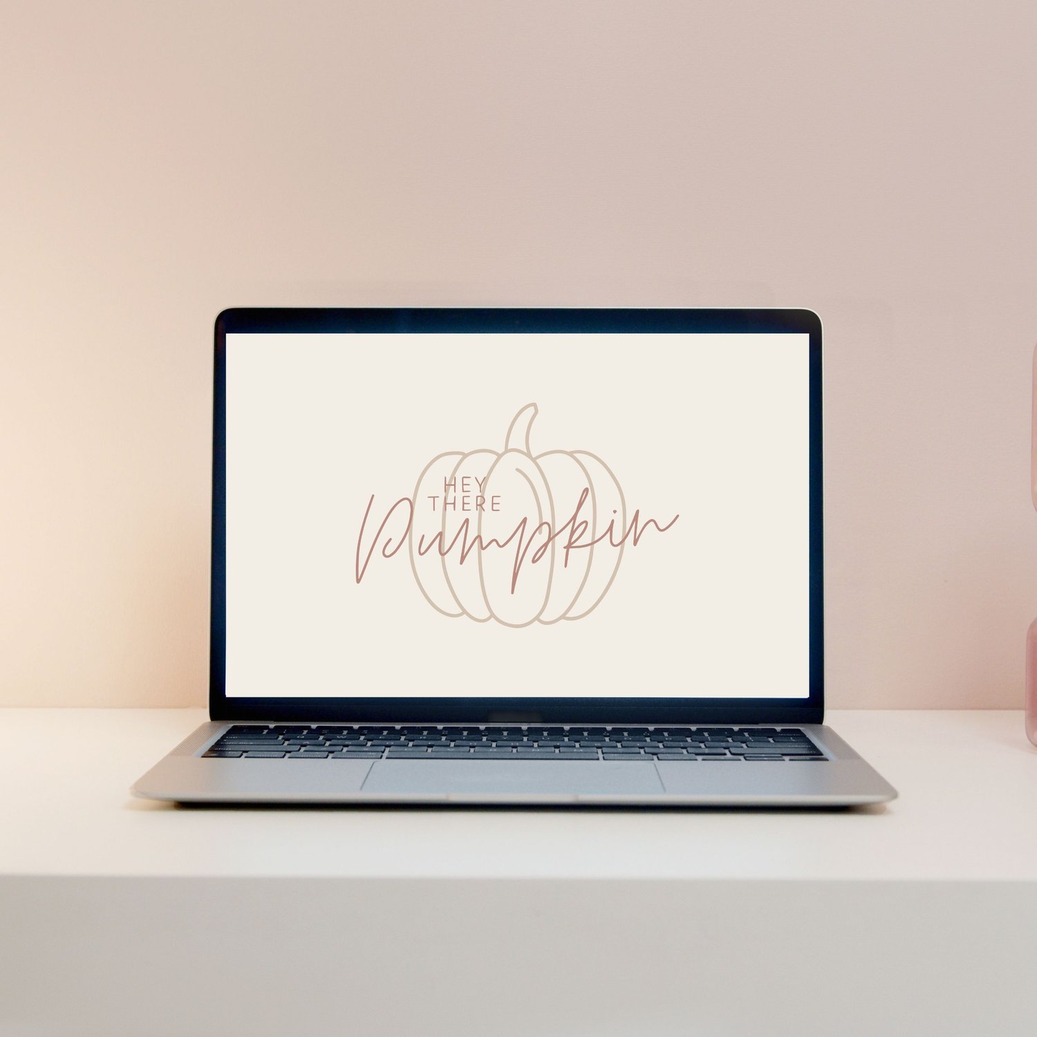 //Hi Pumpkin: Autumn Desktop Background with Blush Tones and Pumpkin Illustration//