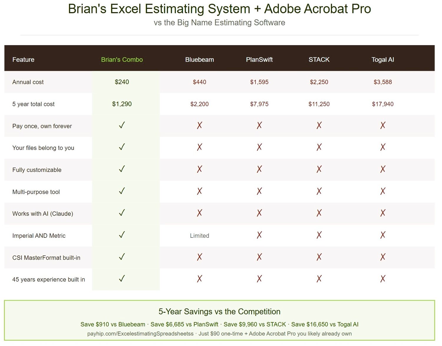 WHY THIS BEATS $1,500-$3,500/YEAR ESTIMATING SOFTWARE