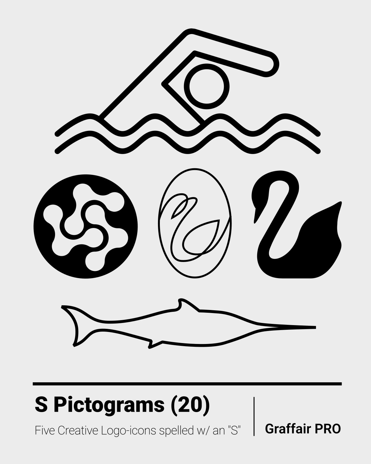 S Pictograms (20): The 20th set of 5 pictograms, each beginning with an "S".