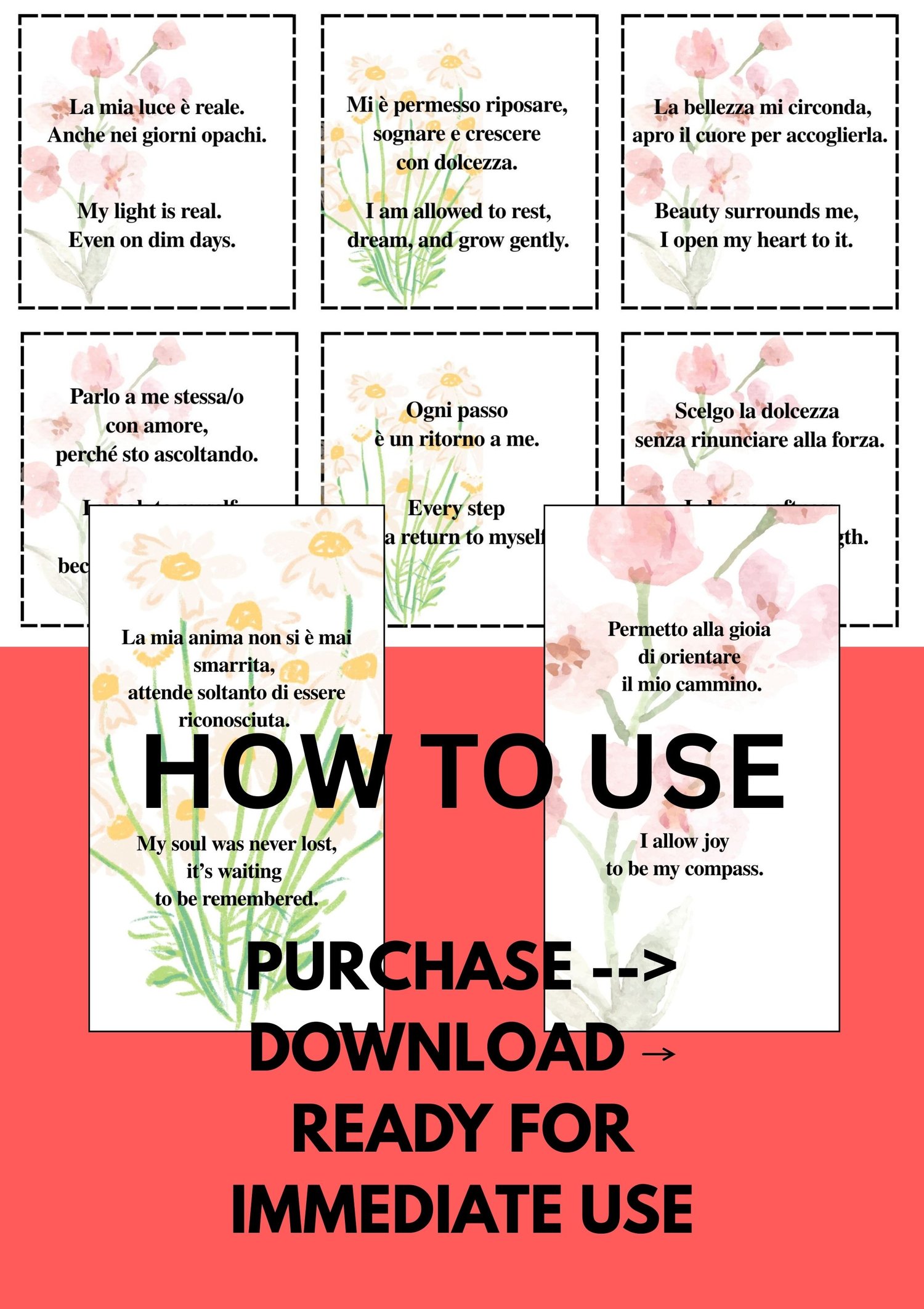 Cut them out and laminate for long-term use, or tuck them into lunchboxes, notebooks, or mirrors as daily reminders of inner strength. You can also save the PNG files directly to your phone and use them as lock screens or wallpapers—so your affirmations are always just a glance away.