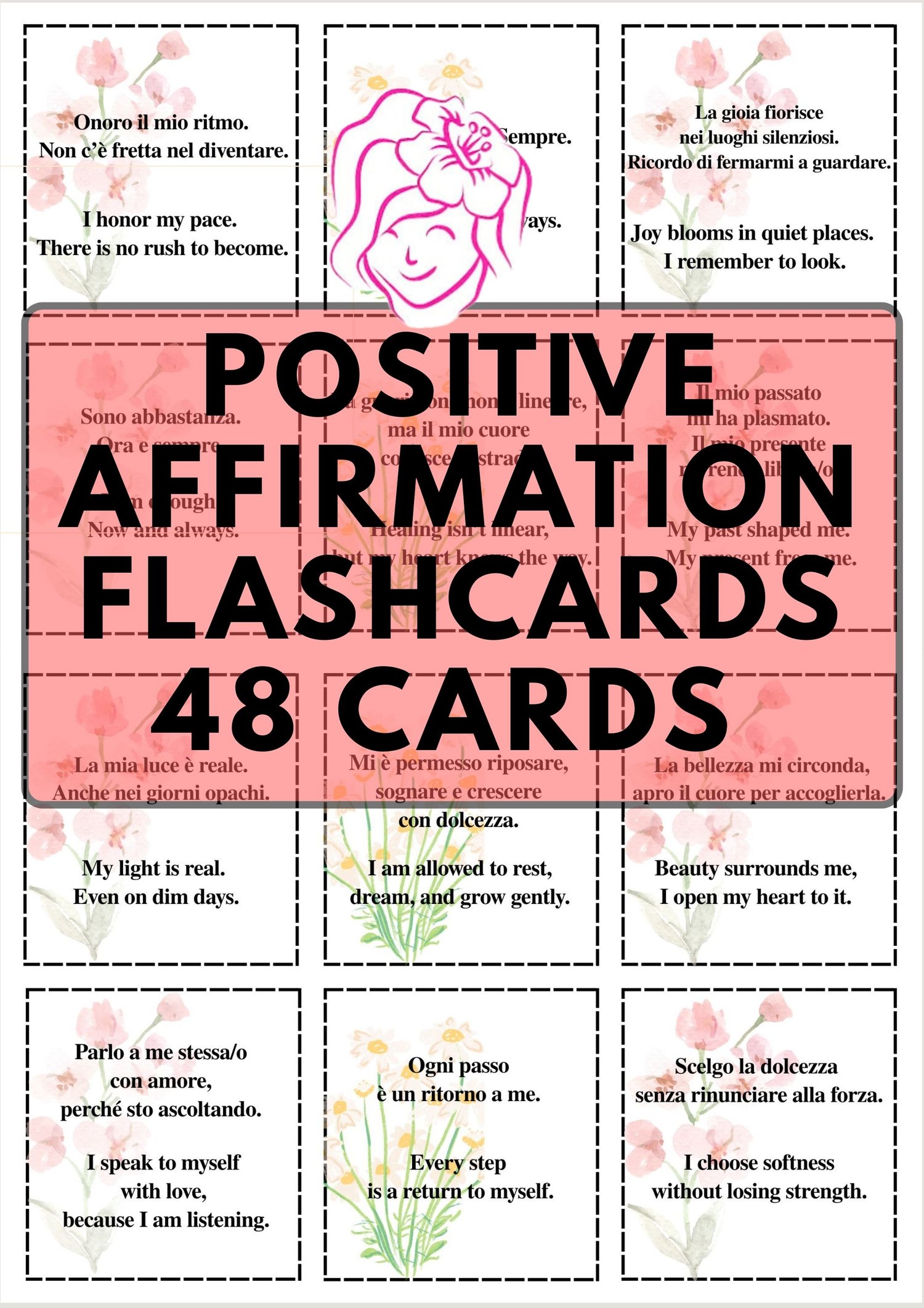 Nurture your mind, uplift your spirit, and reconnect with your inner strength—one card at a time. This beautifully designed set of Positive Affirmation Flashcards is your portable self-care kit, created to inspire confidence, calm, and clarity wherever you are. Whether you print them for your desk or save them as digital PNGs for your phone, these cards offer gentle reminders to pause, breathe, and believe in yourself.