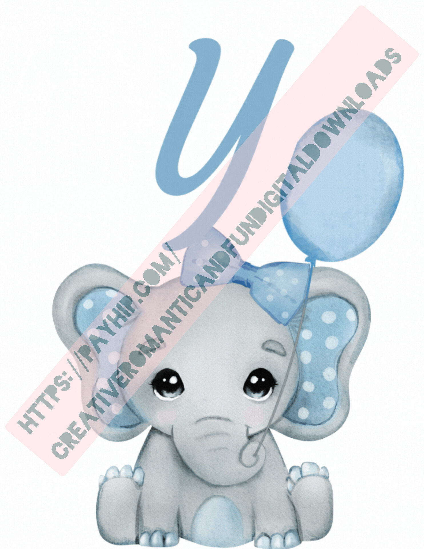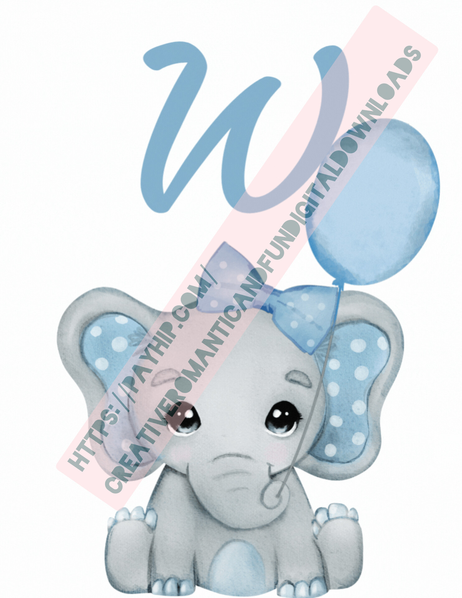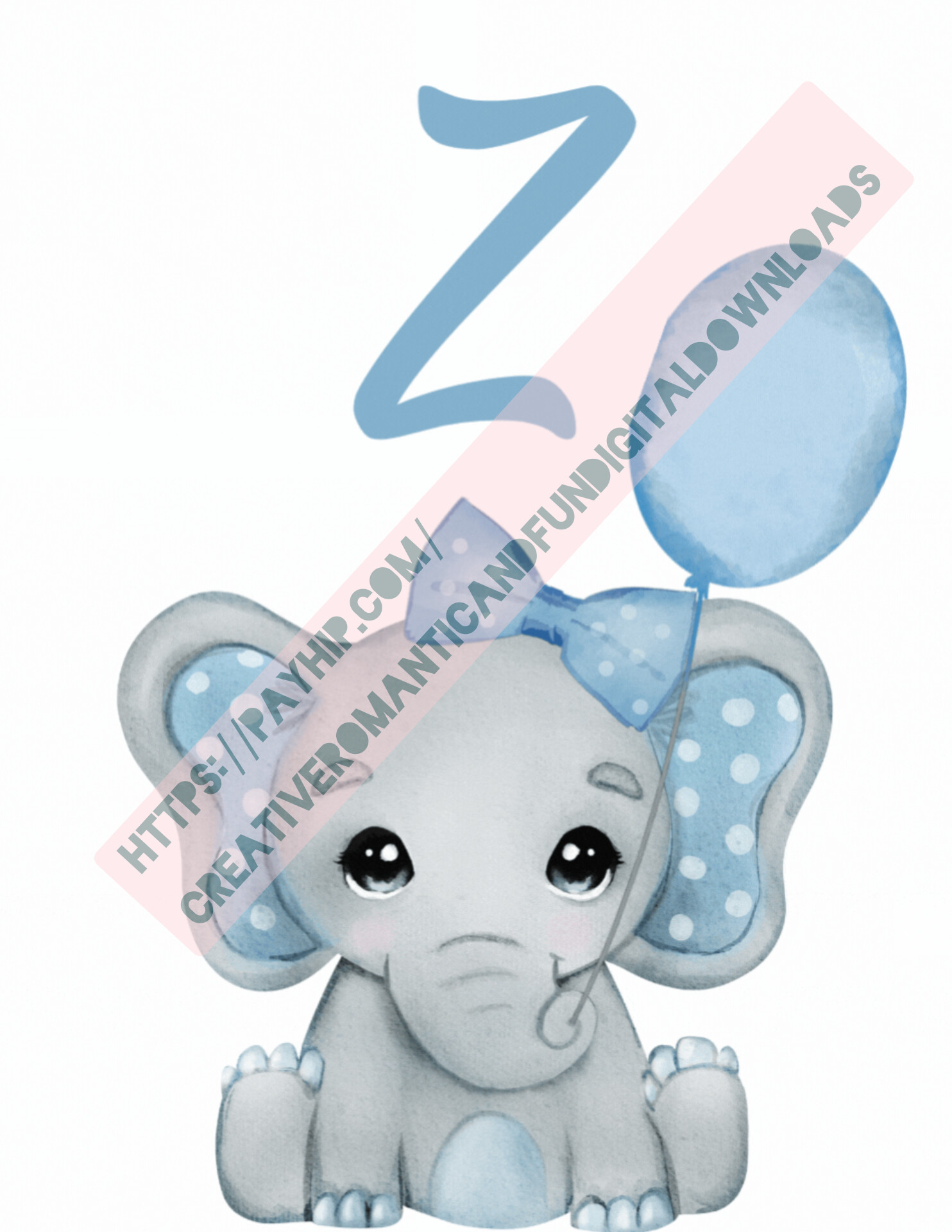 1 PDF FILE with A-Z Cute Blue Elephant Pictures