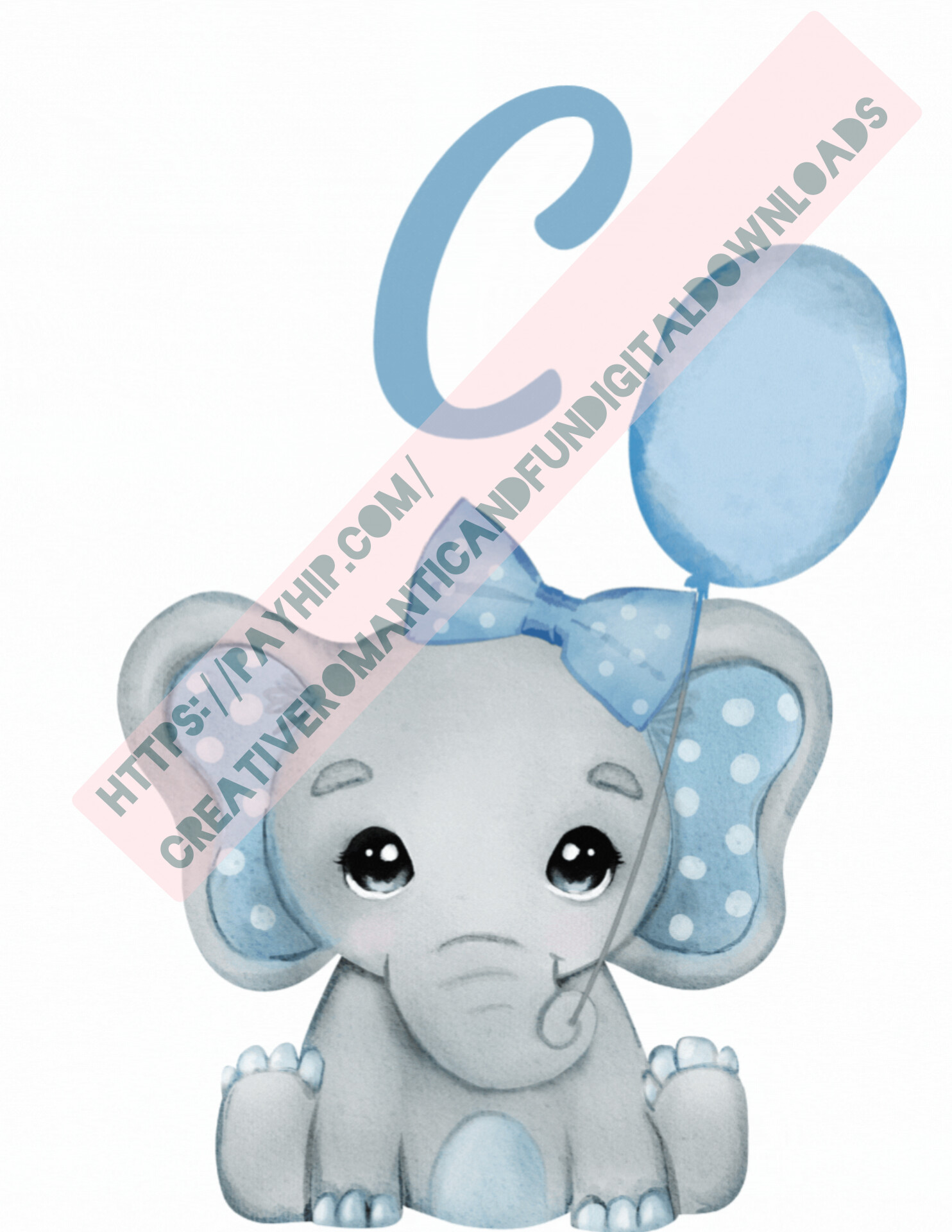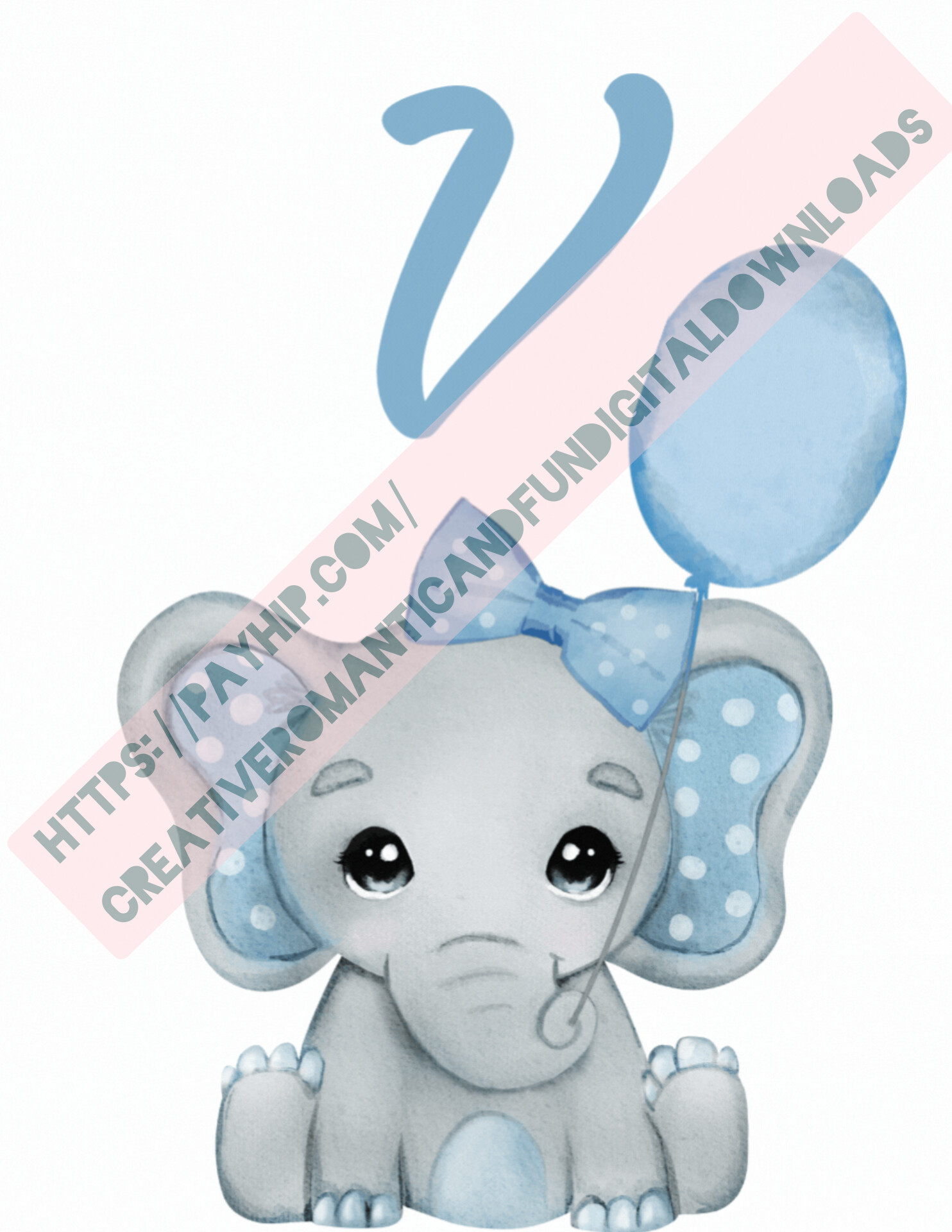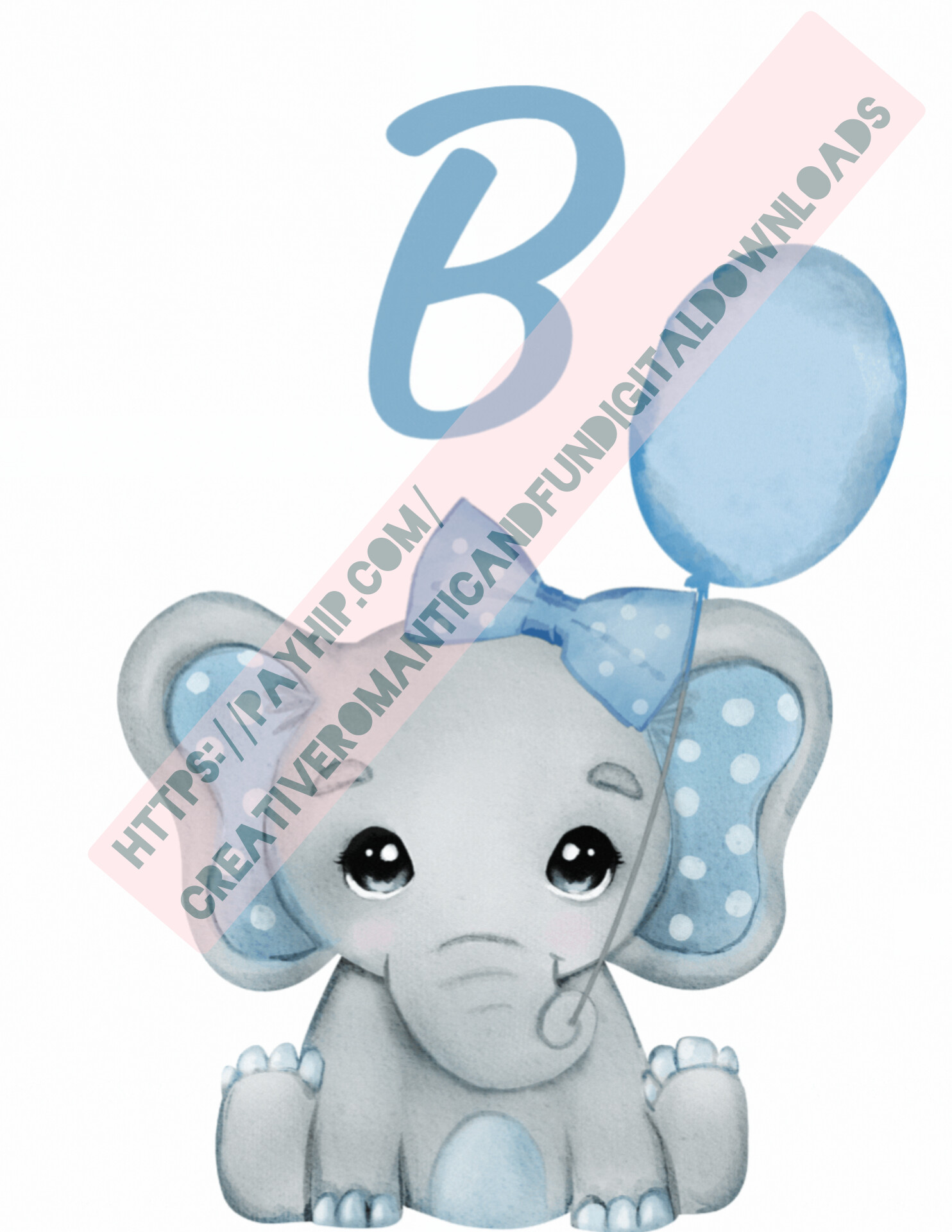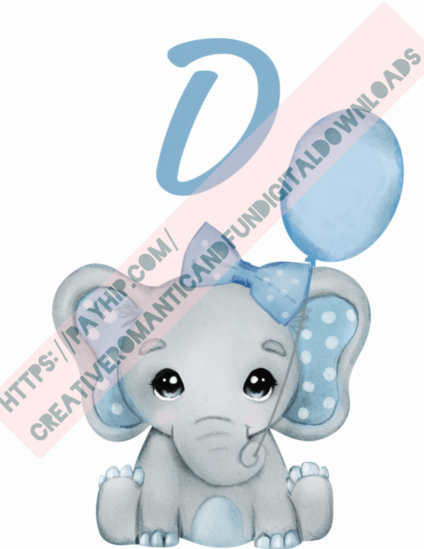 1 PDF FILE with A-Z Cute Blue Elephant Pictures