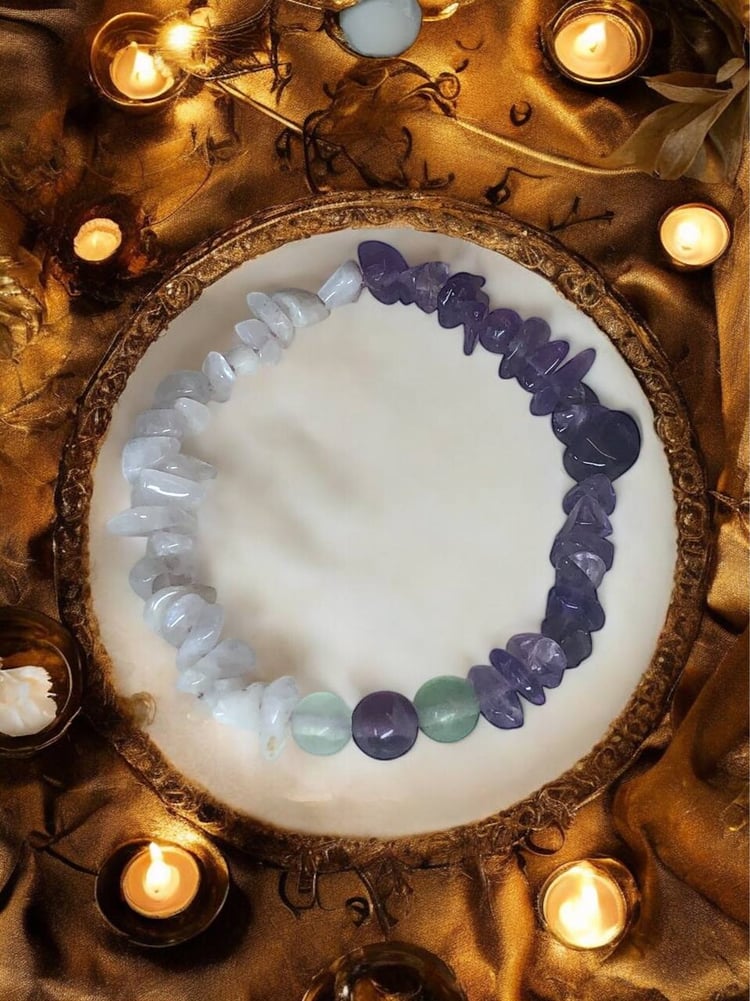 Realizzato con chips di Pietra di Luna naturale, questo bracciale non segue le mode.