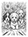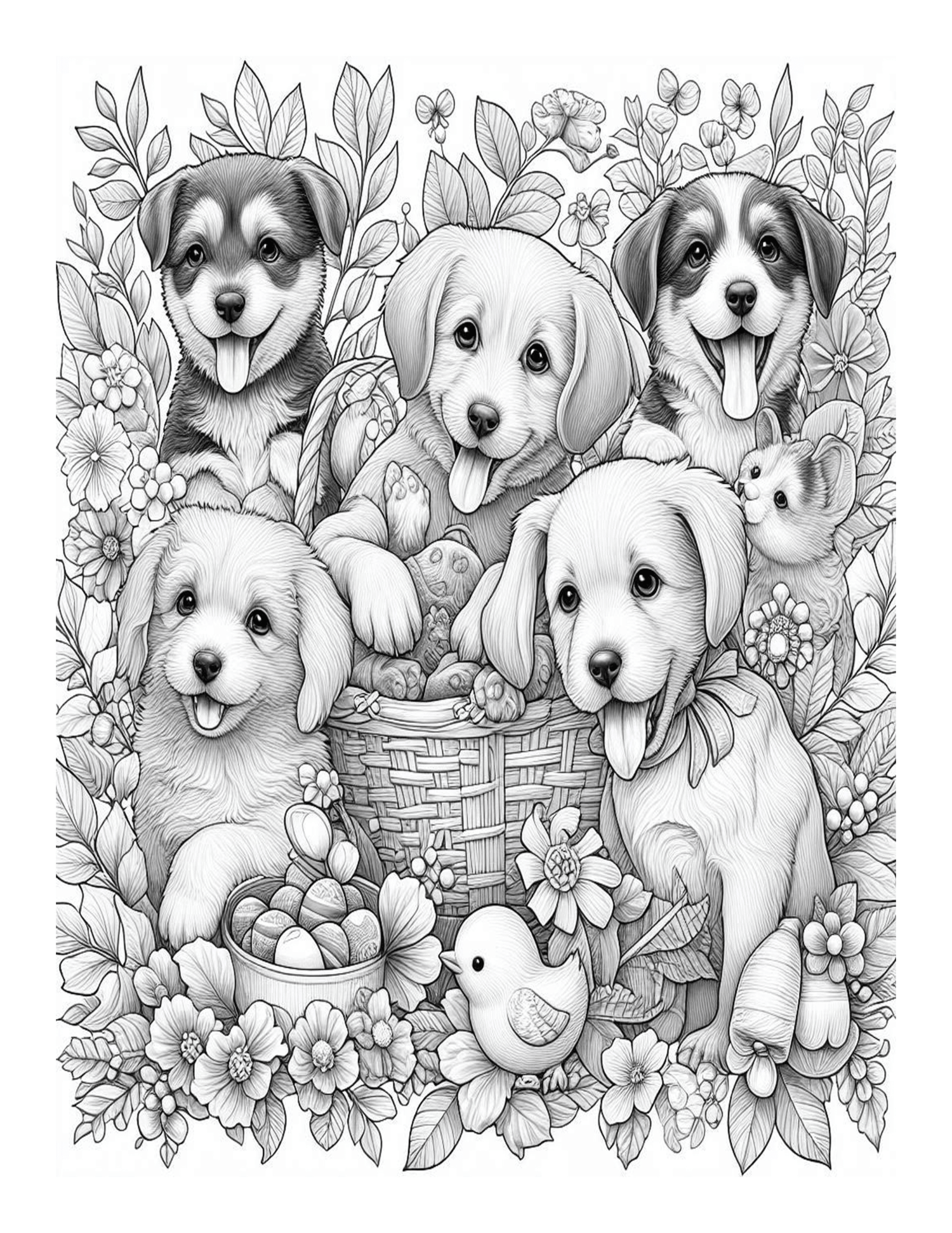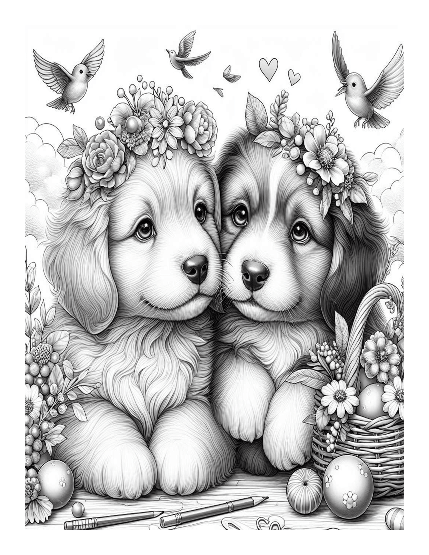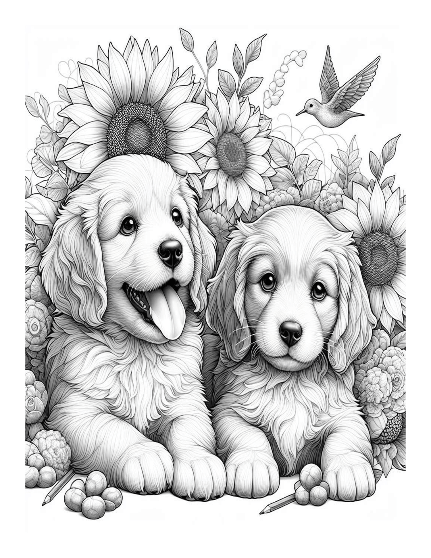 Grayscale Beautiful puppies and dogs Coloring Pages for Adults to enjoy Coloring for Stress Relief