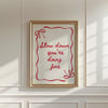 Perfect as a retro lyric poster, this design blends cozy coquette styling with modern aesthetic decor, making it ideal for bedrooms, creative studios, gallery walls, and anyone who loves meaningful song lyrics poster art.