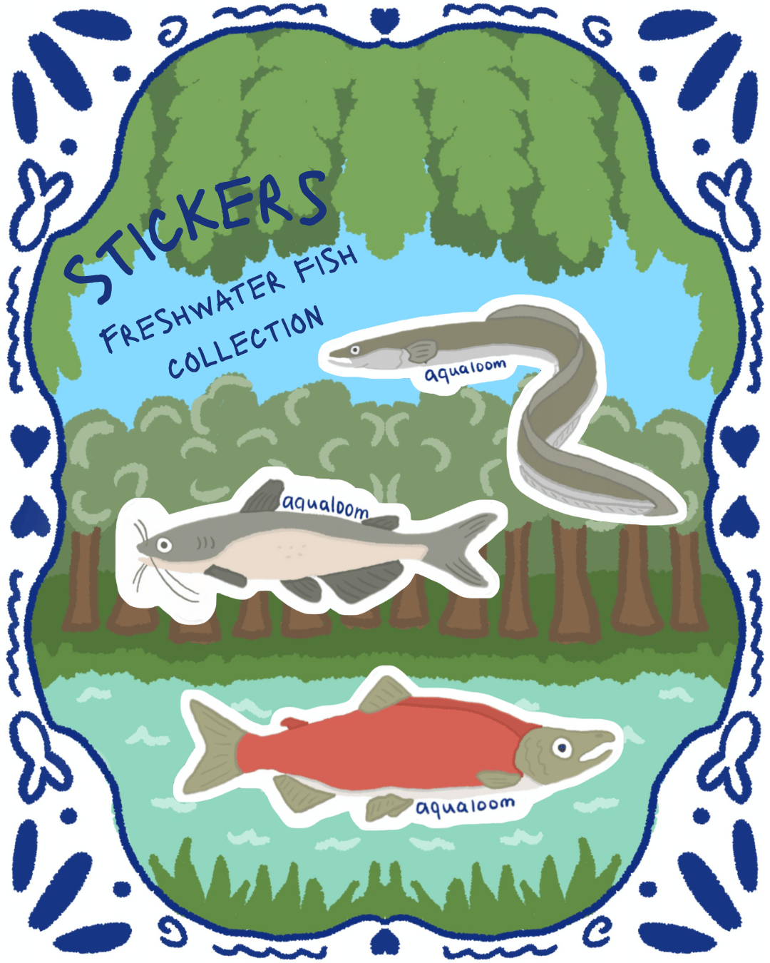 Freshwater Fish Sticker Collection, 3" glossy, waterproof, and eco-friendly.