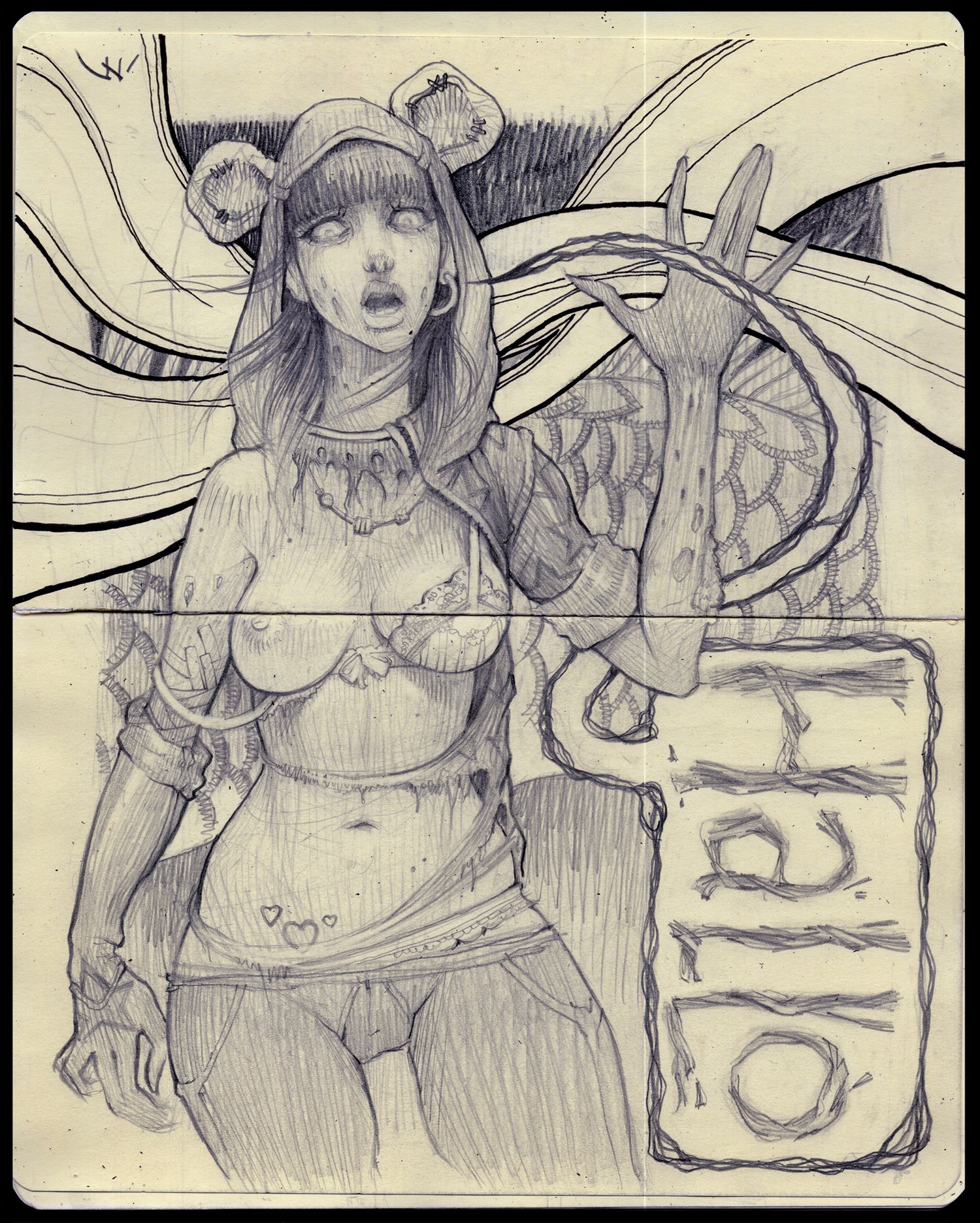 pencil sketches, surealistic illustrations, ladies