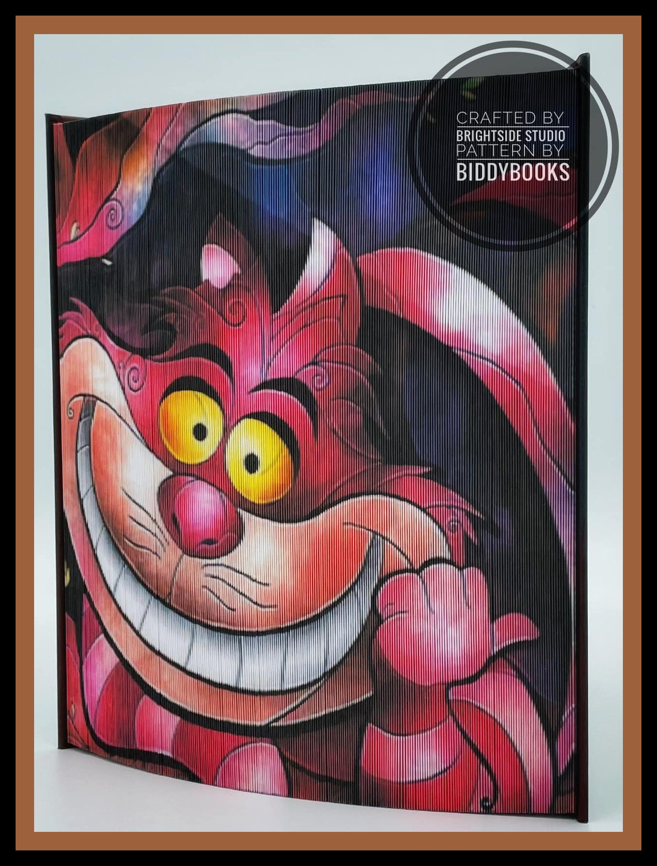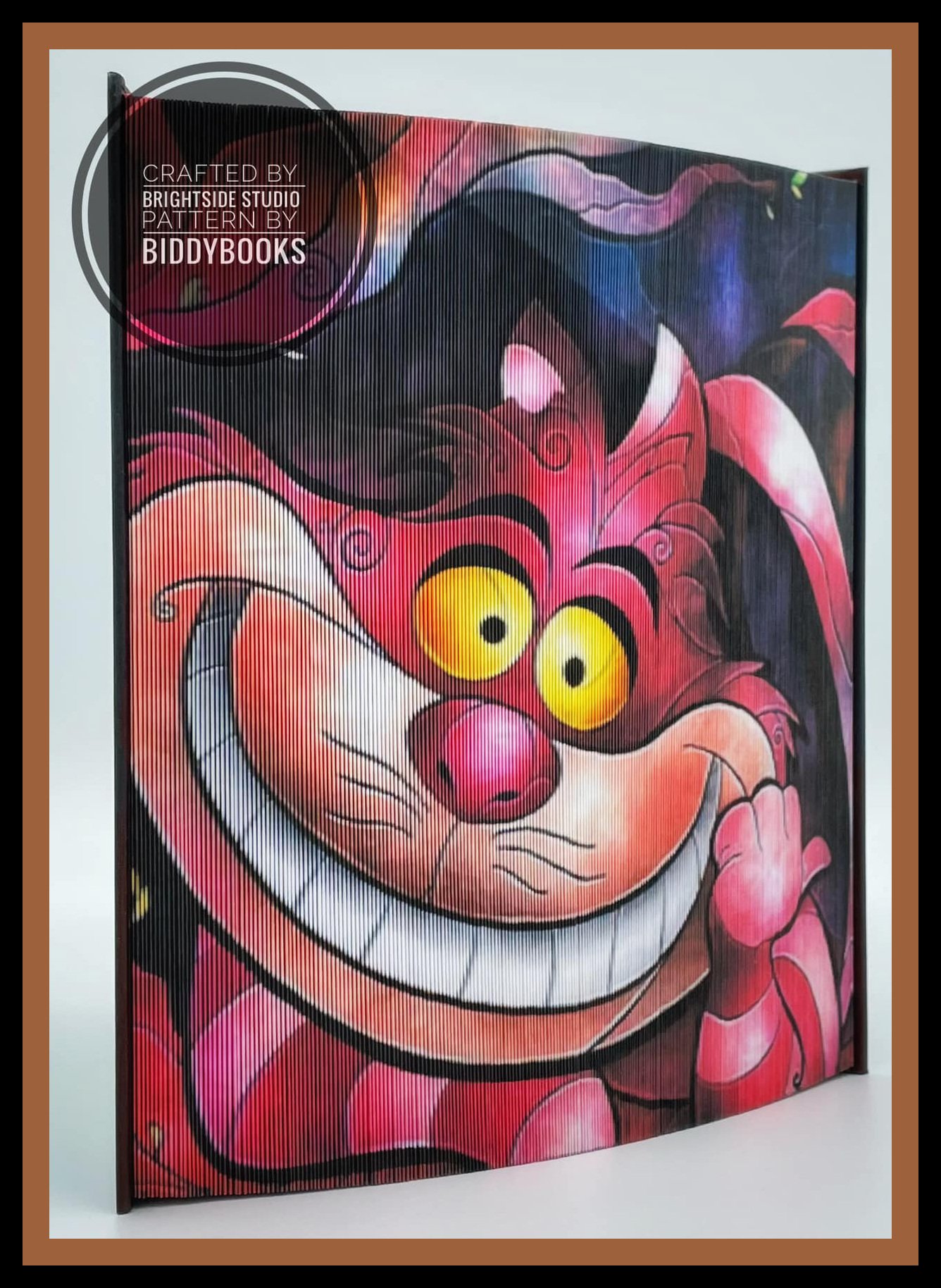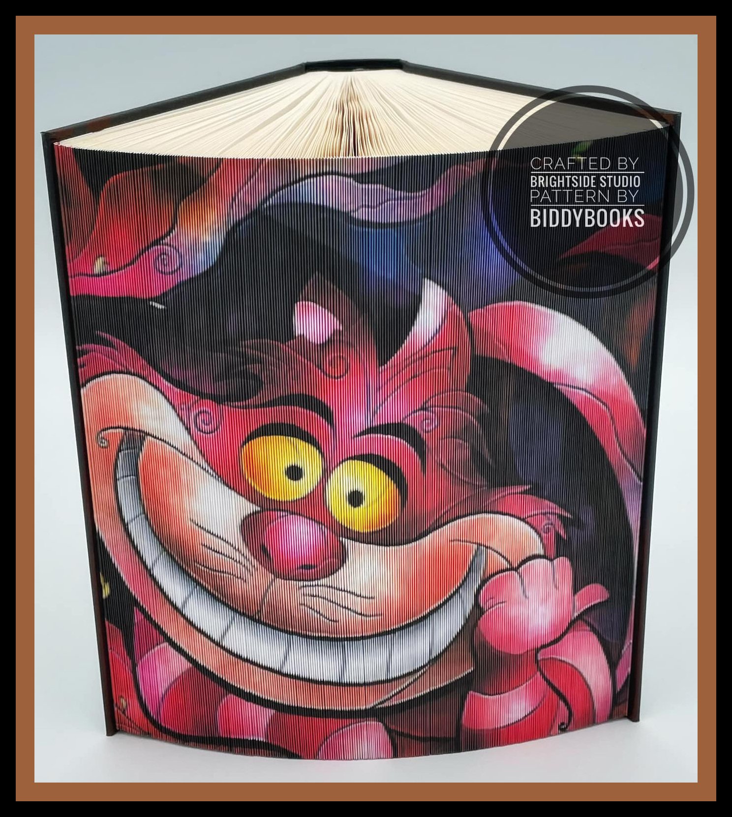 This playful folded book art pattern features the mischievous Cheshire Cat, instantly recognisable by his enormous grin and wide, curious eyes. Bursting with vibrant colour and whimsical charm, this design captures the magical spirit of fantasy storytelling and imagination.