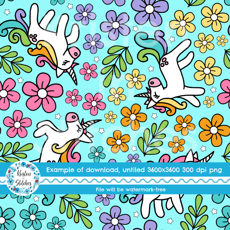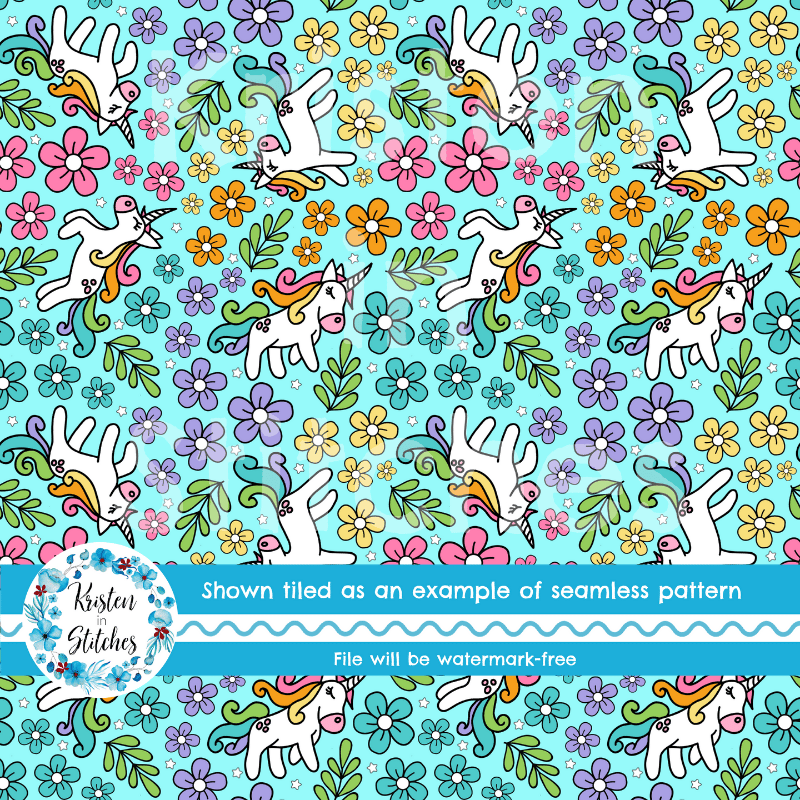 Rainbow Unicorns Daisy Floral Seamless Pattern